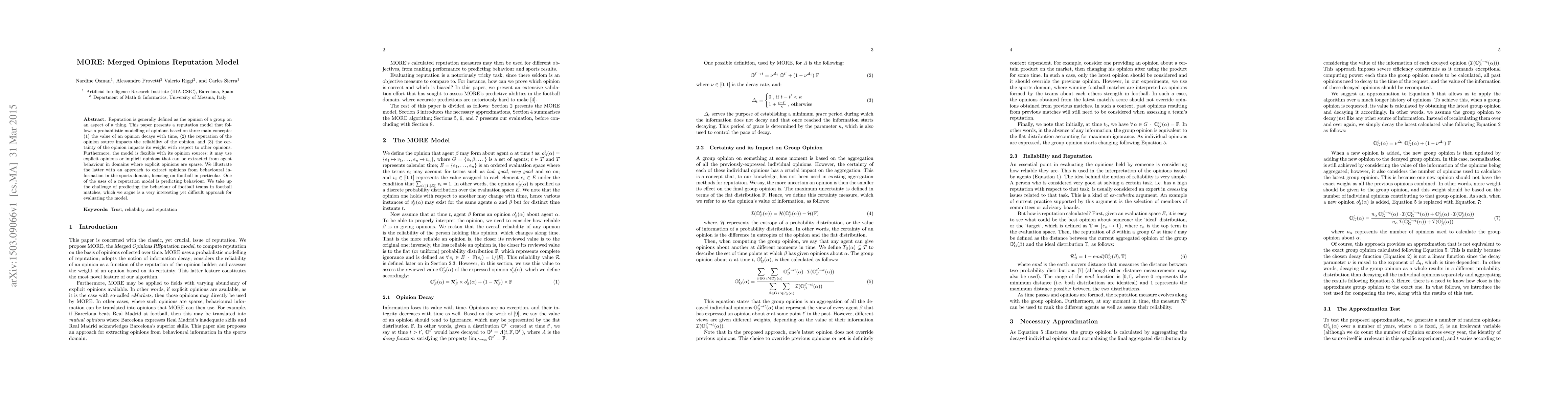 The paper introduces a Merged Opinions Reputation Model that probabilistically assesses opinions based on time decay, source reliability, and opinion certainty. It demonstrates the model's flexibility by extracting implicit opinions from football match behavior to predict team performance, highlighting its potential for behavior prediction.