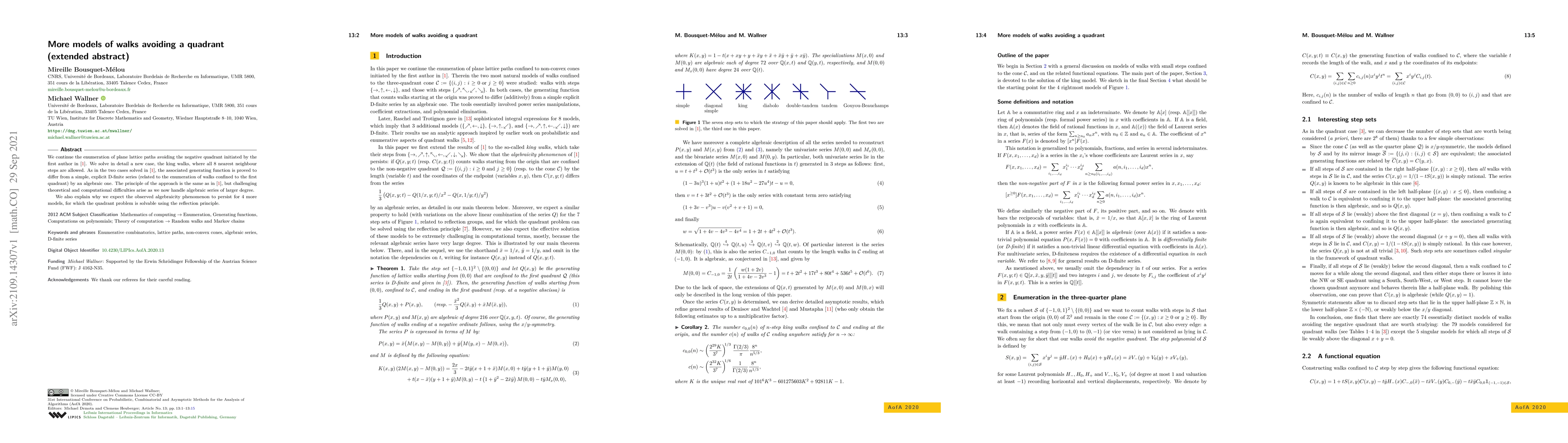 This research extends previous findings on lattice path enumeration by solving a new case (king walks) and identifying a pattern of algebraic series in related models, which was not previously observed.