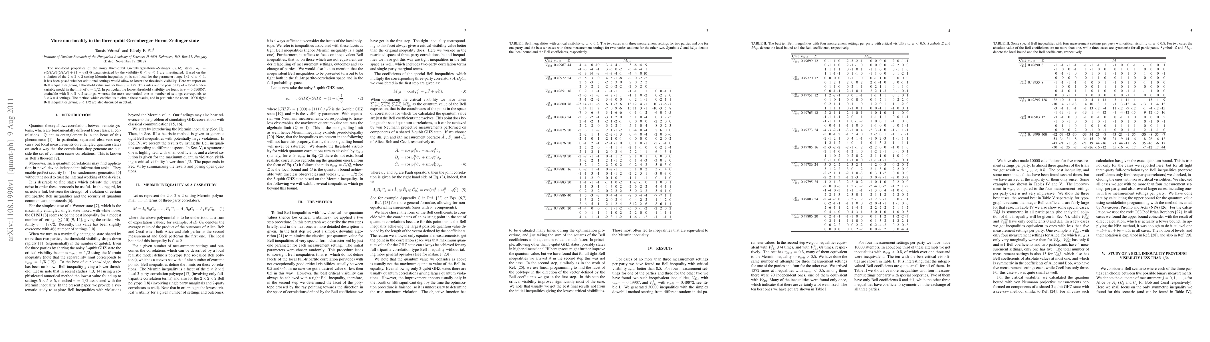 This paper investigates the non-local properties of noisy three-qubit Greenberger-Horne-Zeilinger (GHZ) states, finding that they remain non-local for visibility parameters 1/2 < v < 1. It introduces Bell inequalities that lower the threshold visibility to v=0.496057, ruling out local hidden variable models.