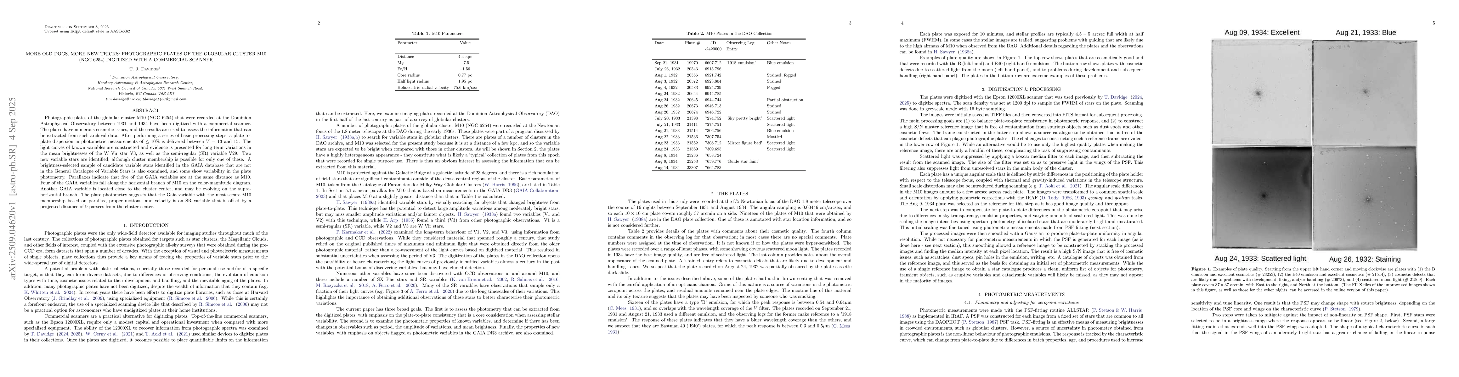 Photographic plates of the globular cluster M10 (NGC 6254) that were recorded at the Dominion Astrophysical Observatory between 1931 and 1934 have been digitized with a commercial scanner. The plates have numerous cosmetic issues, and the results are used to assess the information that can be extracted from such archival data. After performing a series of basic processing steps, a plate-to-plate dispersion in photometric measurements < 10% is delivered between V = 13 and 15. The light curves of known variables are constructed and evidence is presented for long term variations in the mean brightnesses of the W Vir star V3, as well as the semi-regular (SR) variable V29. Two new variable stars are identified, although cluster membership is possible for only one of these. A brightness-selected sample of candidate variable stars identified in the GAIA database that are not in the General Catalogue of Variable Stars is also examined, and some show variability in the plate photometry. Parallaxes indicate that five of the GAIA variables are at the same distance as M10. Four of the GAIA variables fall along the horizontal branch of M10 on the color-magnitude diagram. Another GAIA variable is located close to the cluster center, and may be evolving on the supra-horizontal branch. The plate photometry suggests that the Gaia variable with the most secure M10 membership based on parallax, proper motions, and velocity is an SR variable that is offset by a projected distance of 9 parsecs from the cluster center.