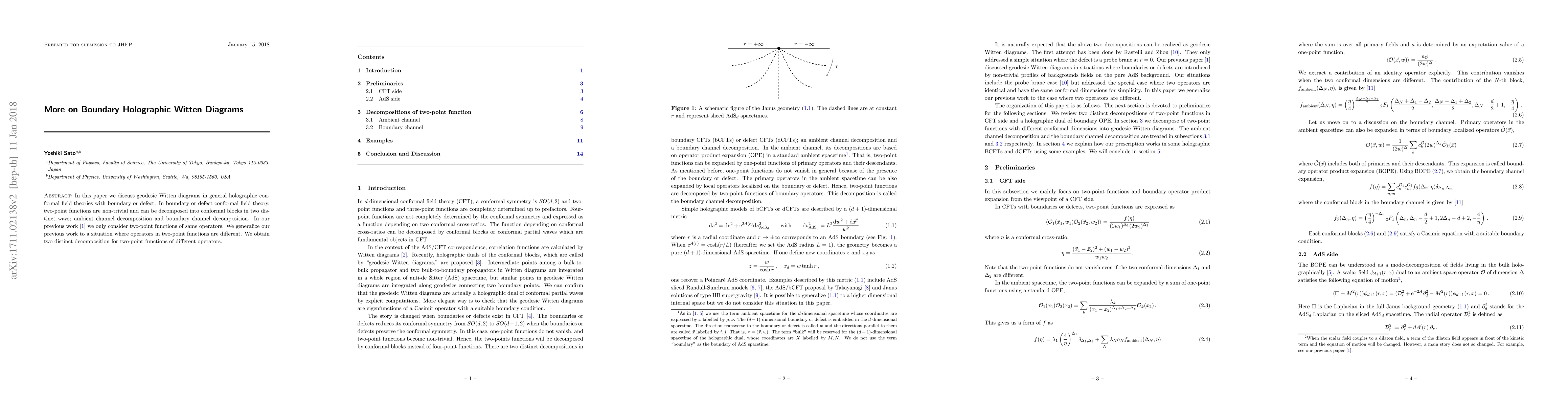 This paper extends previous research on geodesic Witten diagrams in holographic conformal field theories with boundaries, focusing on two-point functions of different operators. It introduces two distinct decompositions for these functions: ambient and boundary channel decompositions.