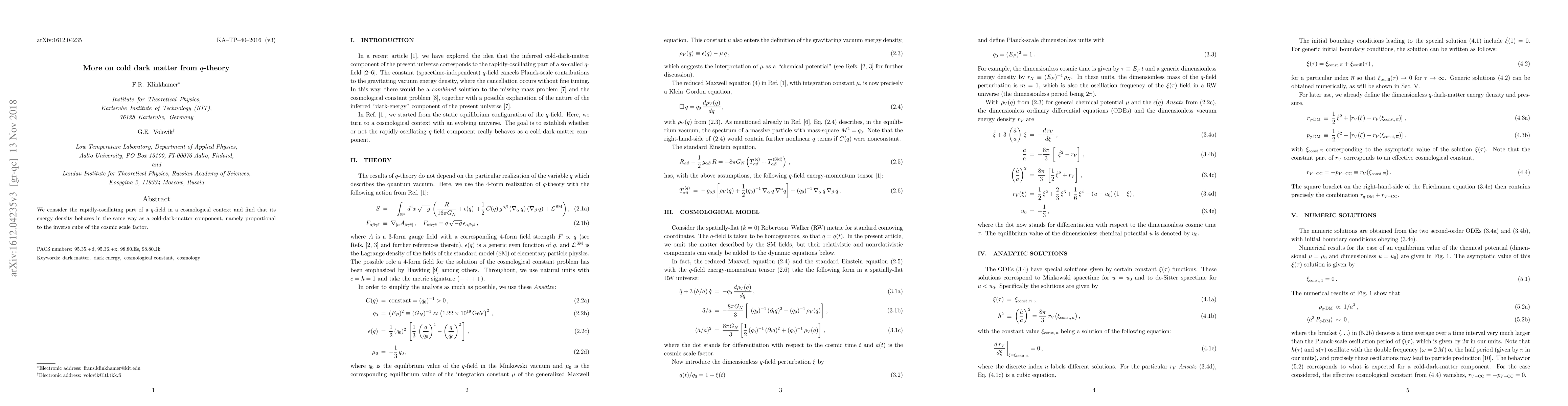 We consider the rapidly-oscillating part of a $q$-field in a cosmological context and find that its energy density behaves in the same way as a cold-dark-matter component, namely proportional to the inverse cube of the cosmic scale factor.