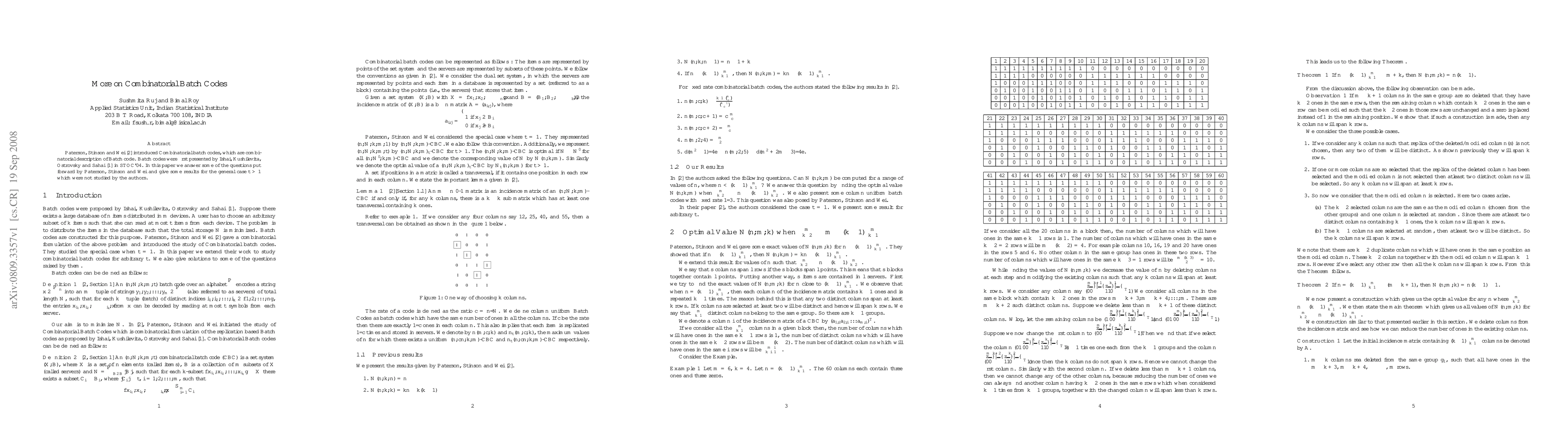 Paterson, Stinson and Wei \cite{PSW} introduced Combinatorial batch codes, which are combinatorial description of Batch code. Batch codes were first presented by Ishai, Kushilevita, Ostrovsky and Sahai \cite{IKOS} in STOC'04. In this paper we answer some of the questions put forward by Paterson, Stinson and Wei and give some results for the general case $t>1$ which were not studied by the authors.