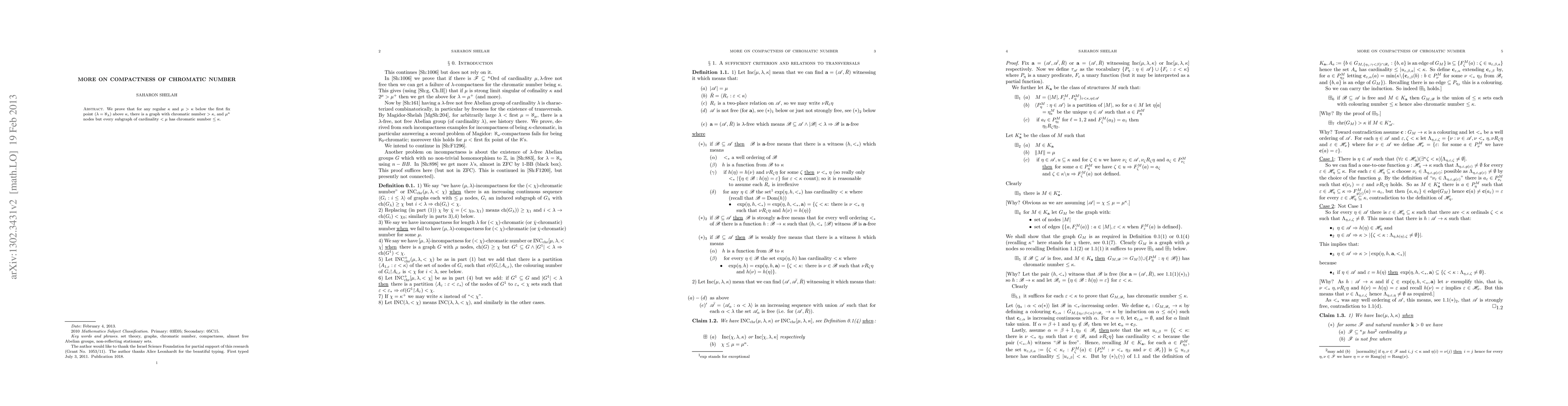 We prove that for any regular kappa and mu > kappa below the first fix point (lambda = aleph_lambda) above kappa, there is a graph with chromatic number > kappa, and mu^kappa nodes but every subgraph of cardinality < mu has chromatic number less than or equal to kappa.