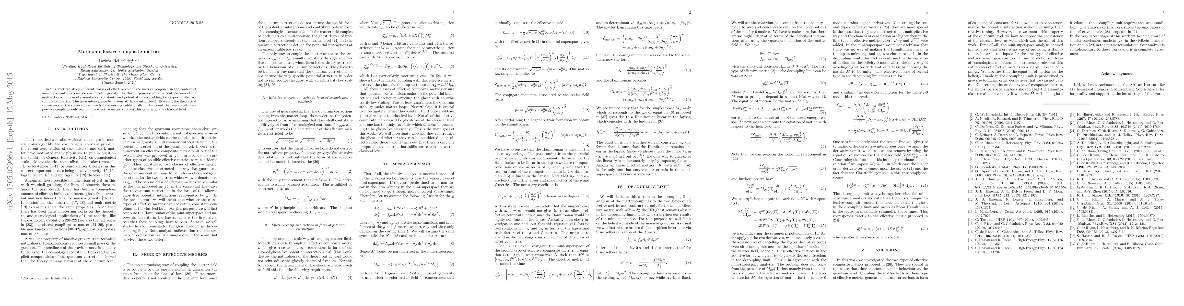 This paper studies effective composite metrics in bimetric gravity, identifying one unique metric that survives theoretical consistency at the classical level among various possible couplings.
