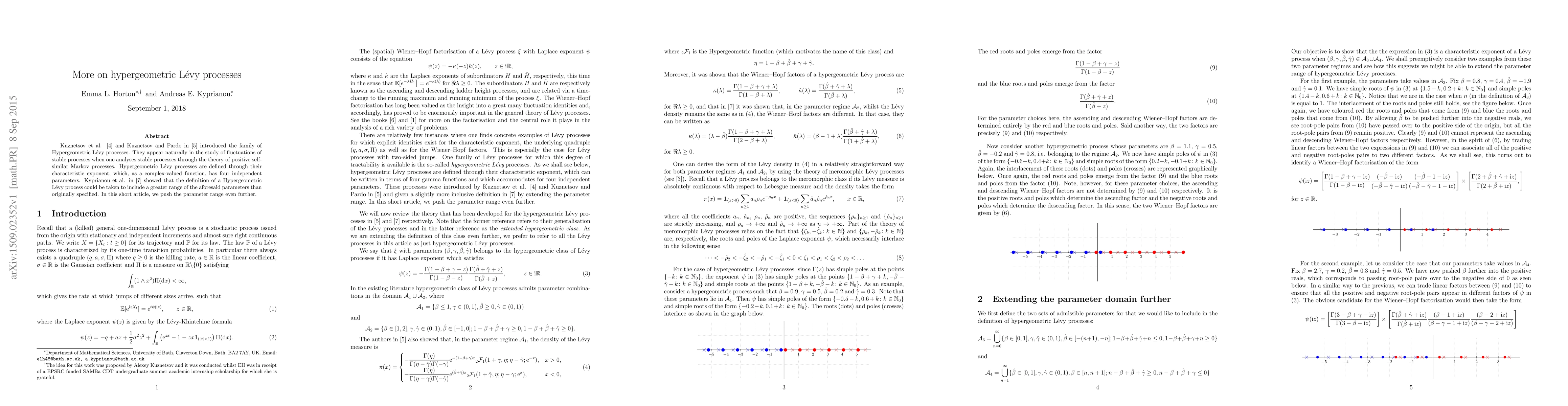 Kuznetsov et al. (2011) and Kuznetsov and Pardo (2013) introduced the family of Hypergeometric L\'evy processes. They appear naturally in the study of fluctuations of stable processes when one analyses stable processes through the theory of positive self-similar Markov processes. Hypergeometric L\'evy processes are defined through their characteristic exponent, which, as a complex-valued function, has four independent parameters. Kyprianou et al. (2014) showed that the definition of a Hypergeometric L\'evy process could be taken to include a greater range of the aforesaid parameters than originally specified. In this short article, we push the parameter range even further. In particular, we calculate the underlying L\'evy measure and potential measures of the Wiener--Hopf factors.