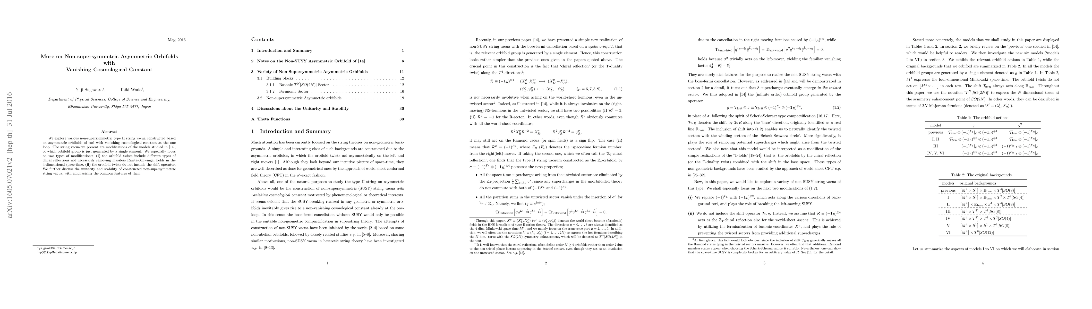 This paper examines non-supersymmetric type II string vacua derived from asymmetric orbifolds with a vanishing cosmological constant. It focuses on modifications that include different chiral reflections and exclude the shift operator, and discusses their unitarity and stability features.