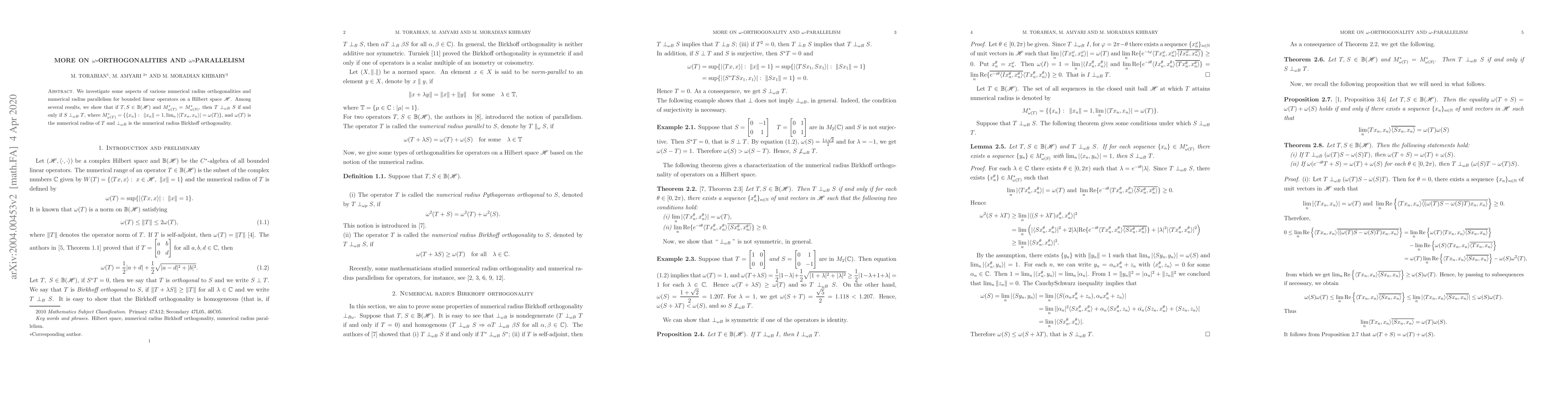 We investigate some aspects of various numerical radius orthogonalities and numerical radius parallelism for bounded linear operators on a Hilbert space $\mathscr{H}$. Among several results, we show that if $T,S\in \mathbb{B}(\mathscr{H})$ and $M^*_{\omega(T)}=M^*_{\omega(S)}$, then $T\perp_{\omega B} S$ if and only if $S\perp_{\omega B} T$, where $M^*_{\omega(T)}=\{\{x_n\}:\,\,\,\|x_n\|=1, \lim_n|\langle Tx_n, x_n\rangle|=\omega(T)\}$, and $\omega(T)$ is the numerical radius of $T$ and $\perp_{\omega B}$ is the numerical radius Birkhoff orthogonality.