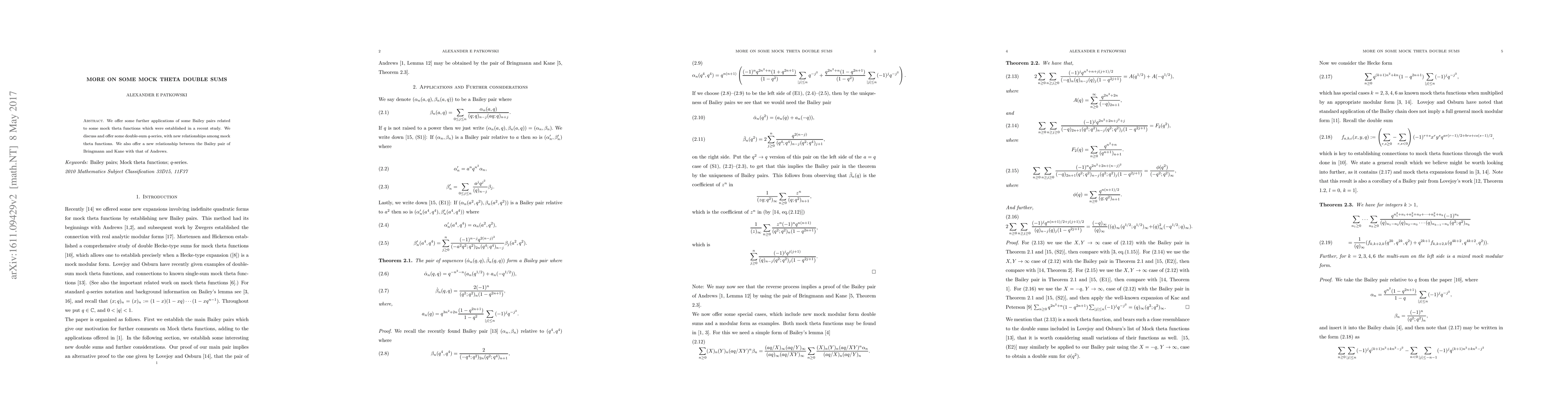 Summary: This paper extends recent applications of Bailey pairs related to mock theta functions, presenting new double-sum $q$-series and relationships among them, along with a novel connection between Bailey pairs of Bringmann-Kane and Andrews.
