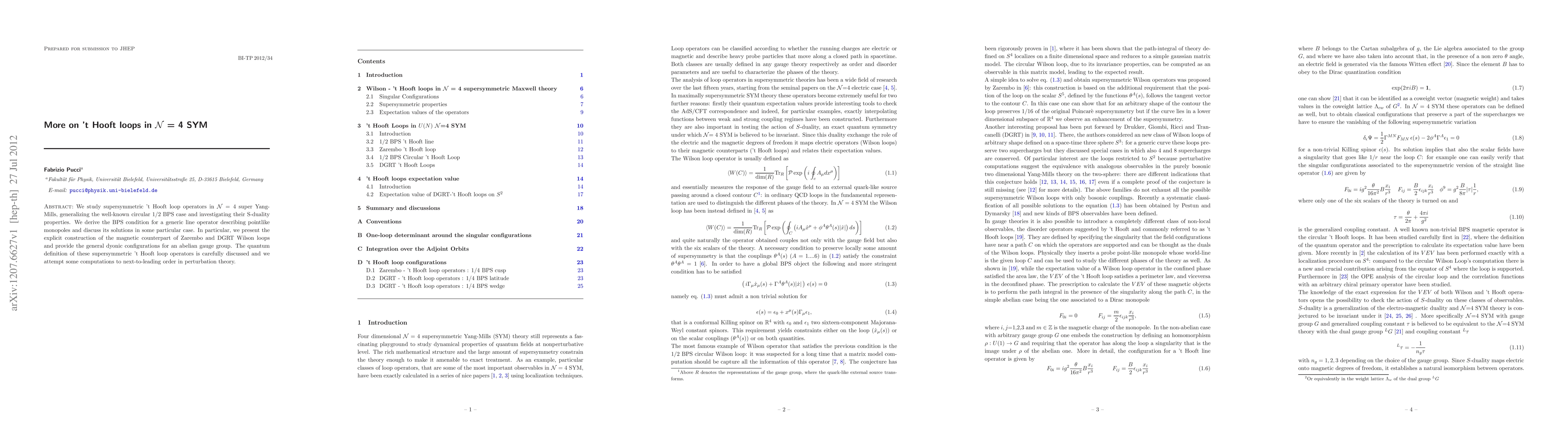 This paper extends the study of supersymmetric 't Hooft loop operators in N=4 super Yang-Mills, beyond the circular 1/2 BPS case, and explores their S-duality properties. It provides the BPS condition for generic line operators representing pointlike monopoles and constructs magnetic counterparts of Wilson loops, aiming at next-to-leading order computations.