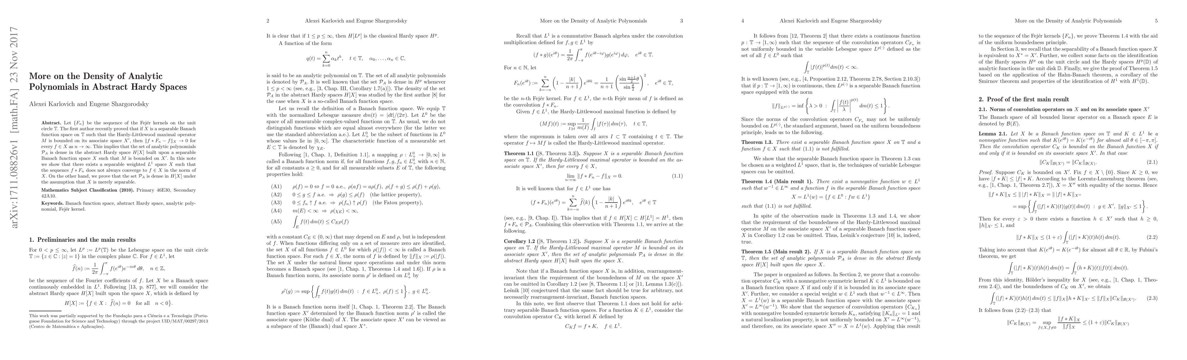 Let $\{F_n\}$ be the sequence of the Fej\'er kernels on the unit circle $\mathbb{T}$. The first author recently proved that if $X$ is a separable Banach function space on $\mathbb{T}$ such that the Hardy-Littlewood maximal operator $M$ is bounded on its associate space $X'$, then $\|f*F_n-f\|_X\to 0$ for every $f\in X$ as $n\to\infty$. This implies that the set of analytic polynomials $\mathcal{P}_A$ is dense in the abstract Hardy space $H[X]$ built upon a separable Banach function space $X$ such that $M$ is bounded on $X'$. In this note we show that there exists a separable weighted $L^1$ space $X$ such that the sequence $f*F_n$ does not always converge to $f\in X$ in the norm of $X$. On the other hand, we prove that the set $\mathcal{P}_A$ is dense in $H[X]$ under the assumption that $X$ is merely separable.