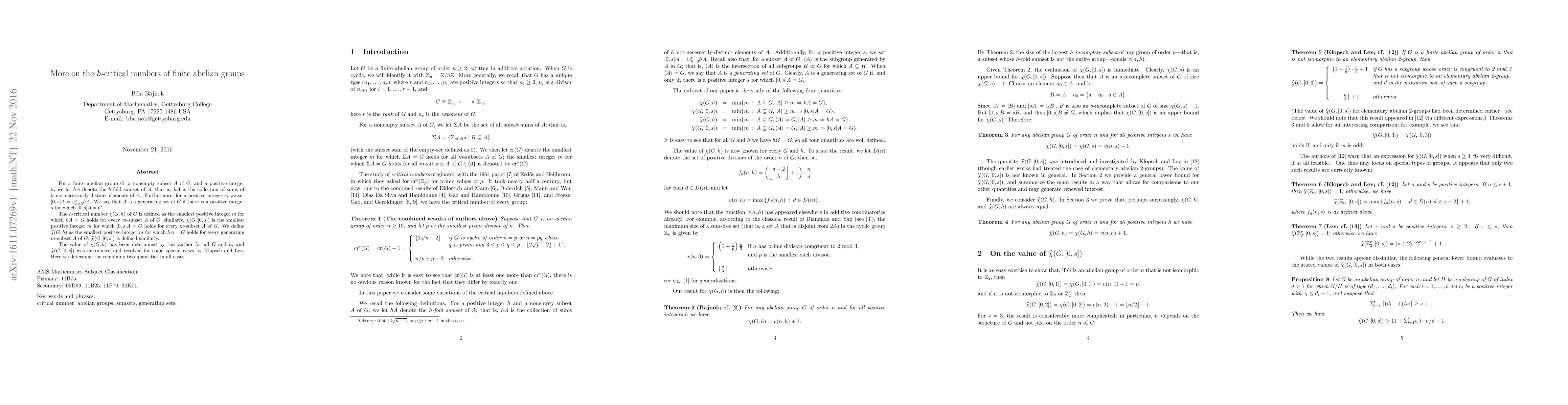 For a finite abelian group $G$, a nonempty subset $A$ of $G$, and a positive integer $h$, we let $hA$ denote the $h$-fold sumset of $A$; that is, $hA$ is the collection of sums of $h$ not-necessarily-distinct elements of $A$. Furthermore, for a positive integer $s$, we set $[0,s] A=\cup_{h=0}^s h A$. We say that $A$ is a generating set of $G$ if there is a positive integer $s$ for which $[0,s] A=G$. The $h$-critical number $\chi (G,h)$ of $G$ is defined as the smallest positive integer $m$ for which $hA=G$ holds for every $m$-subset $A$ of $G$; similarly, $\chi (G,[0,s])$ is the smallest positive integer $m$ for which $[0,s]A=G$ holds for every $m$-subset $A$ of $G$. We define $\widehat{\chi} (G, h)$ as the smallest positive integer $m$ for which $hA=G$ holds for every generating $m$-subset $A$ of $G$; $\widehat{\chi} (G, [0,s])$ is defined similarly. The value of $\chi (G,h)$ has been determined by this author for all $G$ and $h$, and $\widehat{\chi} (G, [0,s])$ was introduced and resolved for some special cases by Klopsch and Lev. Here we determine the remaining two quantities in all cases.