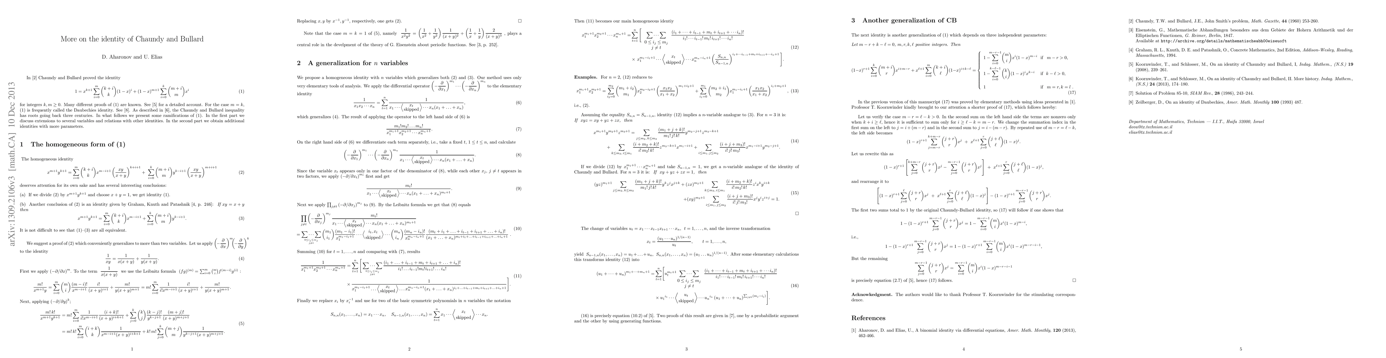 Some ramifications of the identity of Chaundy and Bullard are presented. We discuss its homogeneous form and its relations to other identities, as well as extensions to more variables and more parameters.