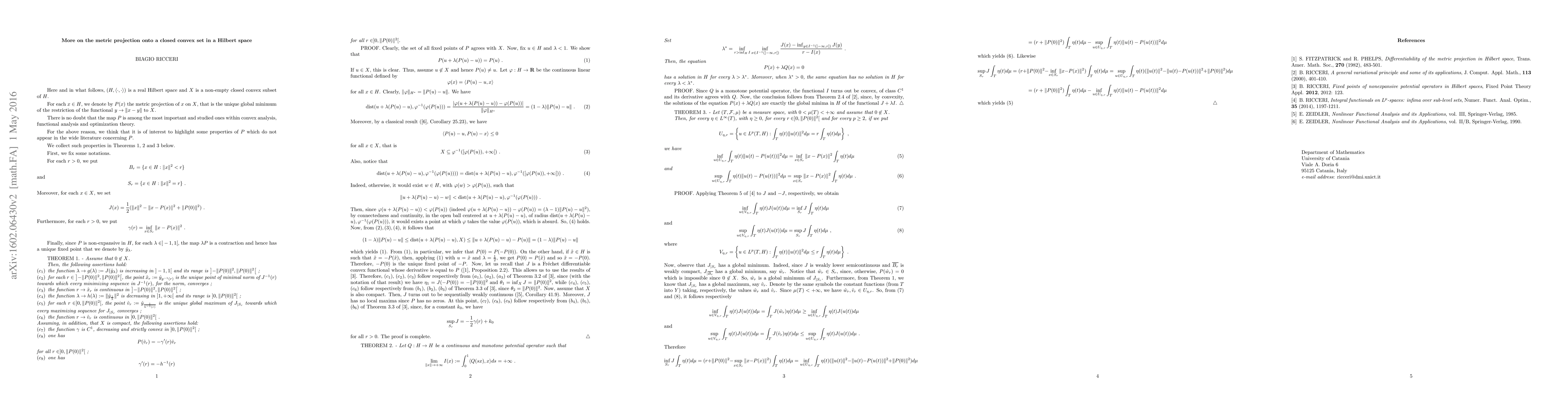 Summary: This paper explores properties of metric projections onto closed convex sets in Hilbert spaces, leveraging recent findings on fixed points of nonexpansive potential operators to enhance understanding of these projections.