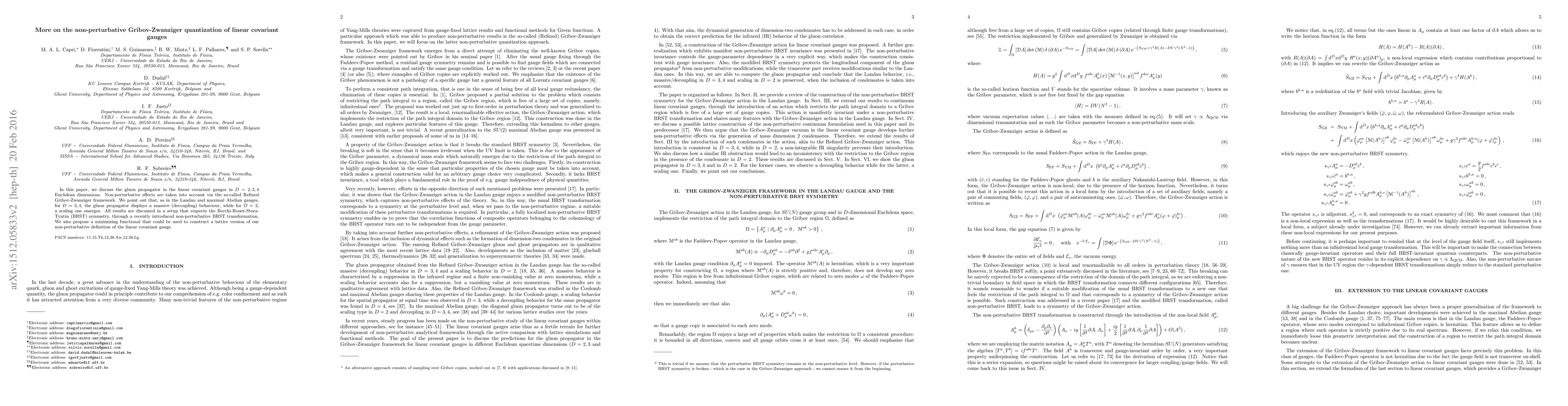 In this paper, we discuss the gluon propagator in the linear covariant gauges in $D=2,3,4$ Euclidean dimensions. Non-perturbative effects are taken into account via the so-called Refined Gribov-Zwanziger framework. We point out that, as in the Landau and maximal Abelian gauges, for $D=3,4$, the gluon propagator displays a massive (decoupling) behaviour, while for $D=2$, a scaling one emerges. All results are discussed in a setup that respects the Becchi-Rouet-Stora-Tyutin (BRST) symmetry, through a recently introduced non-perturbative BRST transformation. We also propose a minimizing functional that could be used to construct a lattice version of our non-perturbative definition of the linear covariant gauge.