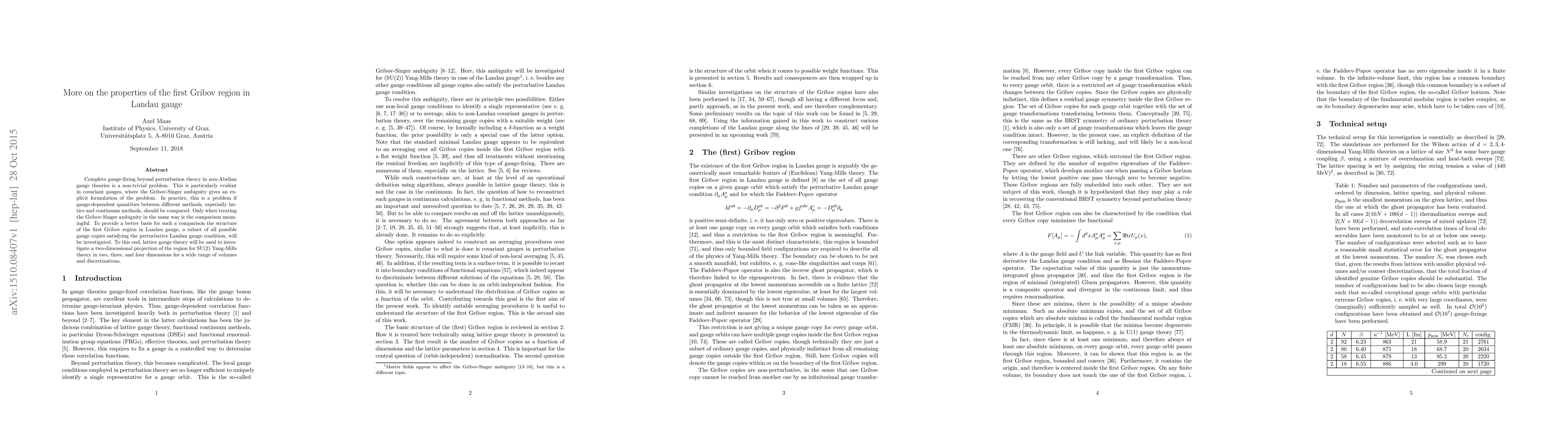 This paper explores the properties of the first Gribov region in Landau gauge to improve the comparison between lattice and continuum methods in non-Abelian gauge theories, using lattice gauge theory to study SU(2) Yang-Mills theory in various dimensions and volumes. The focus is on resolving the Gribov-Singer ambiguity to ensure meaningful cross-method comparisons.