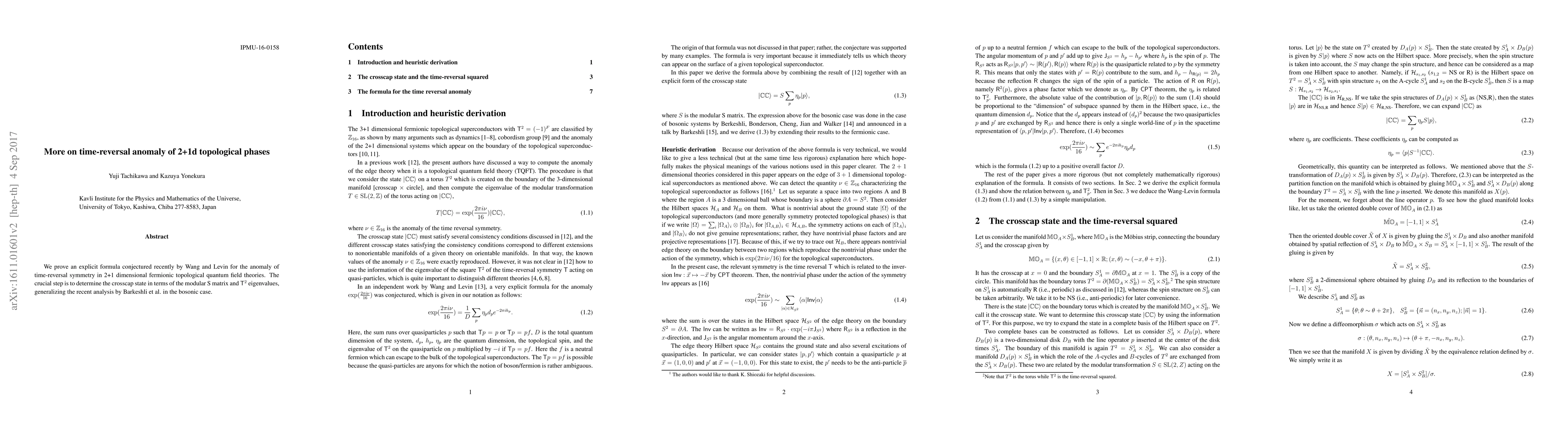 This paper provides a proof for a conjectured formula regarding the time-reversal anomaly in 2+1d fermionic topological quantum field theories, extending the analysis from the bosonic case by determining the crosscap state through the modular S matrix and $\mathsf{T}^2$ eigenvalues.
