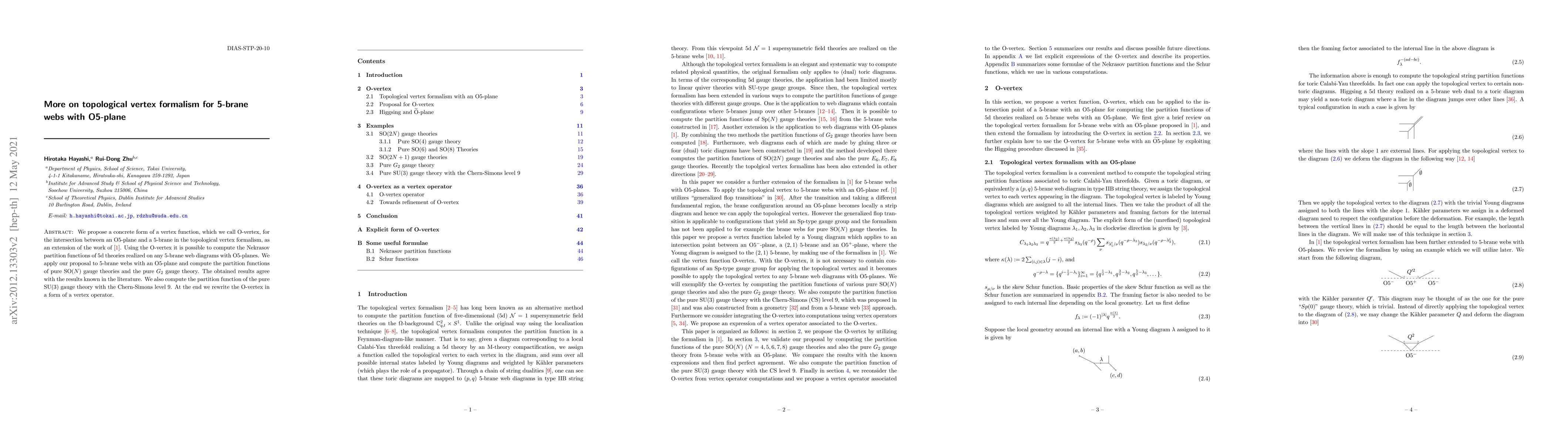 This paper introduces an O-vertex function within the topological vertex formalism to describe the intersection between an O5-plane and a 5-brane, enabling computation of Nekrasov partition functions for 5d theories on 5-brane webs with O5-planes. It validates the method by computing known partition functions for SO($N$) and $G_2$ gauge theories and presents new results for SU(3) with Chern-Simons level 9, concluding with a reformulation of the O-vertex as a vertex operator.