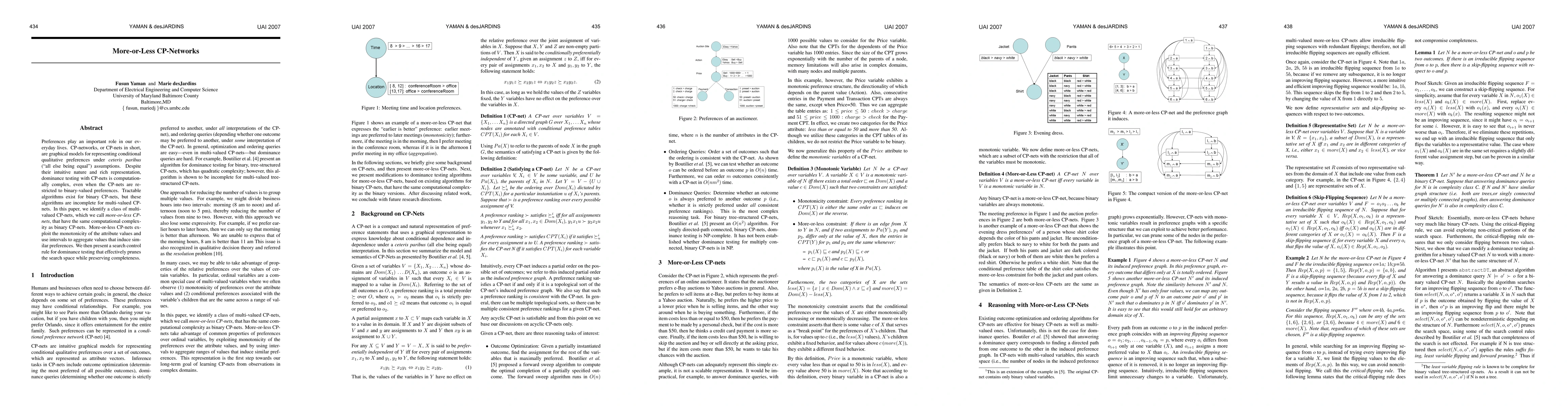 This paper introduces "more-or-less CP-nets," a class of multivalued CP-networks that maintain the computational complexity of binary CP-nets. It proposes a search control rule to efficiently prune the search space during dominance testing while ensuring completeness.