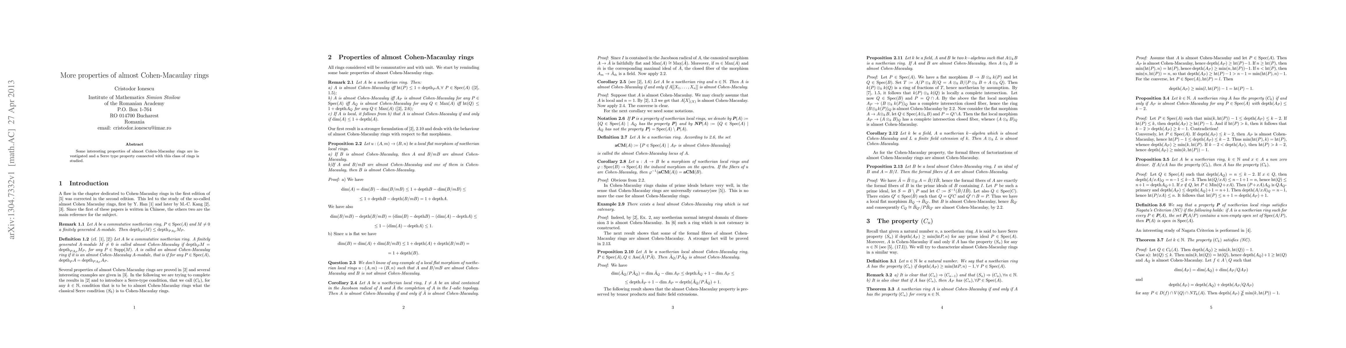 Summary: This paper explores additional properties of almost Cohen-Macaulay rings and investigates a Serre-type property associated with these rings, contributing to a deeper understanding of their algebraic structure.