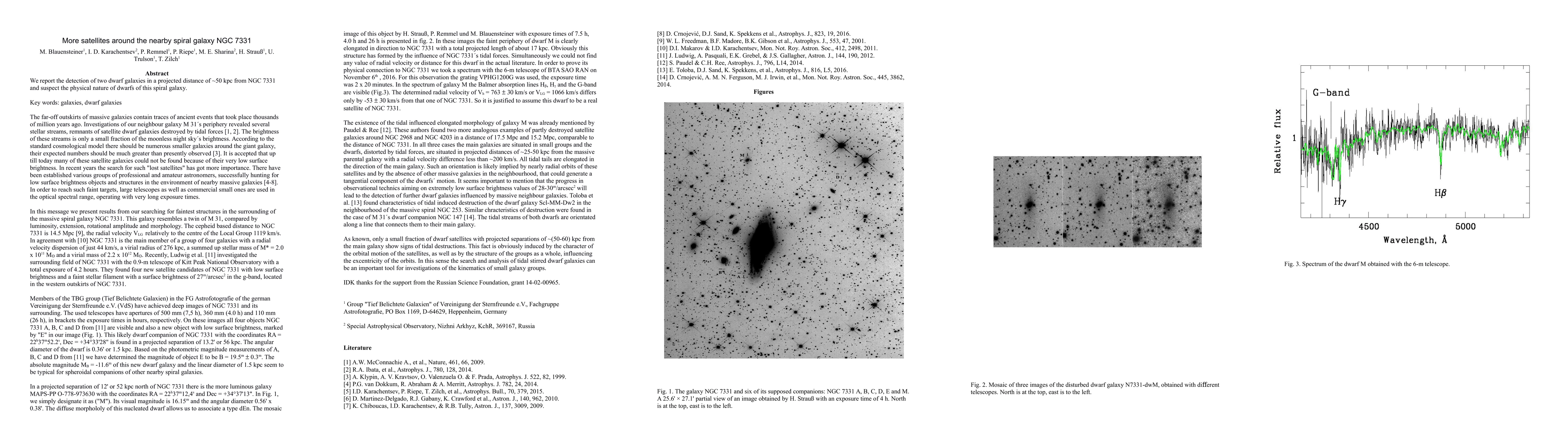 Summary: This study reports the discovery of two dwarf galaxies located approximately 50 kpc from the nearby spiral galaxy NGC 7331, suggesting they are likely satellite companions.