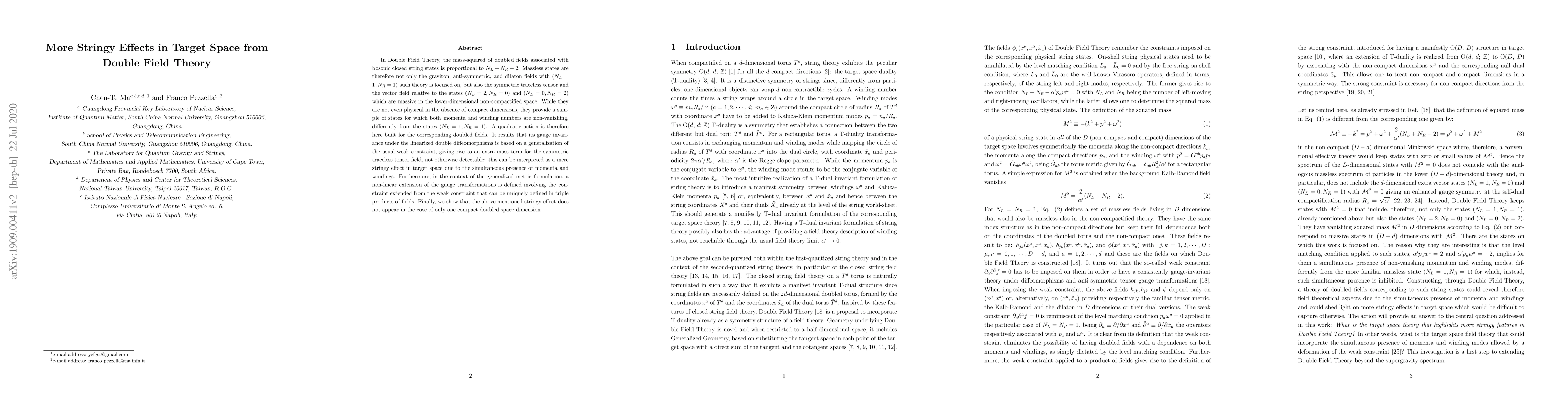 Double Field Theory reveals new stringy effects in target space due to non-vanishing momenta and winding numbers, leading to an extra mass term for certain fields and a generalization of gauge transformations.