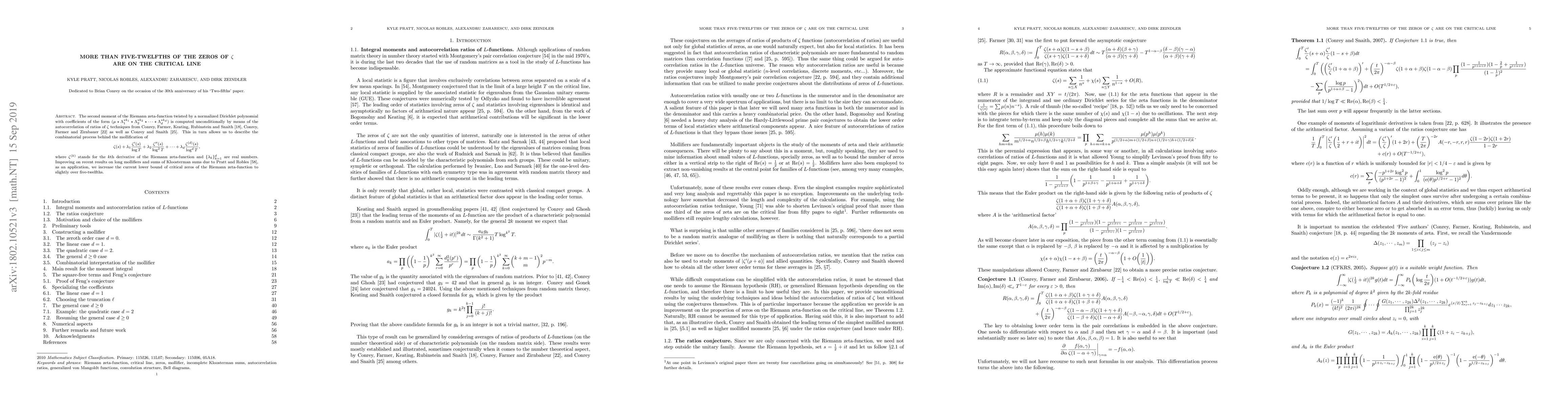 The second moment of the Riemann zeta-function twisted by a normalized Dirichlet polynomial with coefficients of the form $(\mu \star \Lambda_1^{\star k_1} \star \Lambda_2^{\star k_2} \star \cdots \star \Lambda_d^{\star k_d})$ is computed unconditionally by means of the autocorrelation of ratios of $\zeta$ techniques from Conrey, Farmer, Keating, Rubinstein and Snaith (2005), Conrey, Farmer and Zirnbauer (2008) as well as Conrey and Snaith (2007). This in turn allows us to describe the combinatorial process behind the mollification of \[ \zeta(s) + \lambda_1 \frac{\zeta'(s)}{\log T} + \lambda_2 \frac{\zeta''(s)}{\log^2 T} + \cdots + \lambda_d \frac{\zeta^{(d)}(s)}{\log^d T}, \] where $\zeta^{(k)}$ stands for the $k$th derivative of the Riemann zeta-function and $\{\lambda_k\}_{k=1}^d$ are real numbers. Improving on recent results on long mollifiers and sums of Kloosterman sums due to Pratt and Robles (2017), as an application, we increase the current lower bound of critical zeros of the Riemann zeta-function to slightly over five-twelfths.