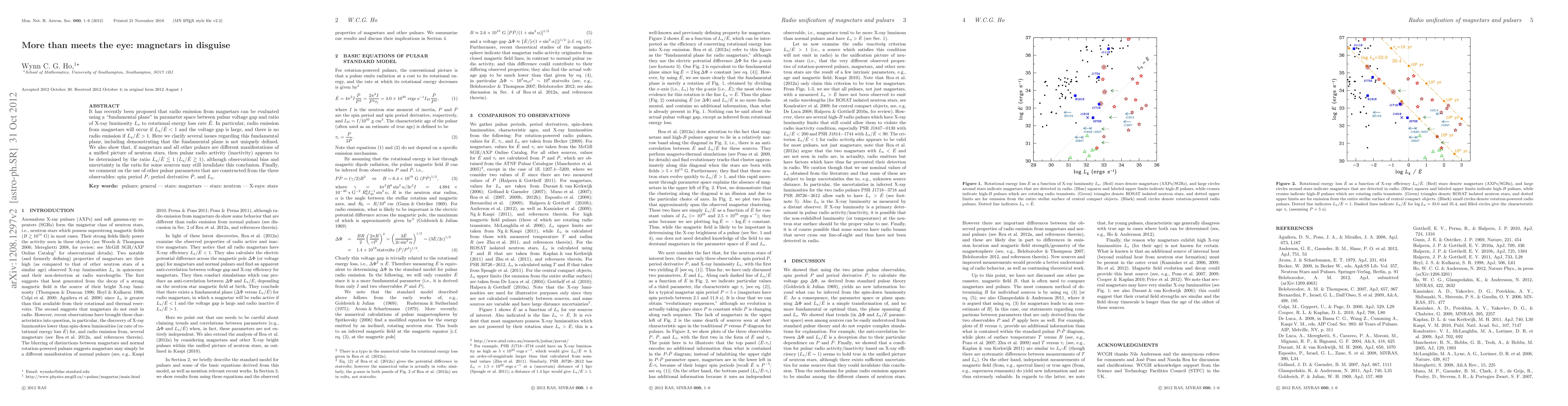 It has recently been proposed that radio emission from magnetars can be evaluated using a "fundamental plane" in parameter space between pulsar voltage gap and ratio of X-ray luminosity Lx to rotational energy loss rate Edot. In particular, radio emission from magnetars will occur if Lx/Edot<1 and the voltage gap is large, and there is no radio emission if Lx/Edot>1. Here we clarify several issues regarding this fundamental plane, including demonstrating that the fundamental plane is not uniquely defined. We also show that, if magnetars and all other pulsars are different manifestations of a unified picture of neutron stars, then pulsar radio activity (inactivity) appears to be determined by the ratio Lx/Edot<1 (Lx/Edot>1), although observational bias and uncertainty in the ratio for some sources may still invalidate this conclusion. Finally, we comment on the use of other pulsar parameters that are constructed from the three observables: spin period P, period derivative Pdot, and Lx.
