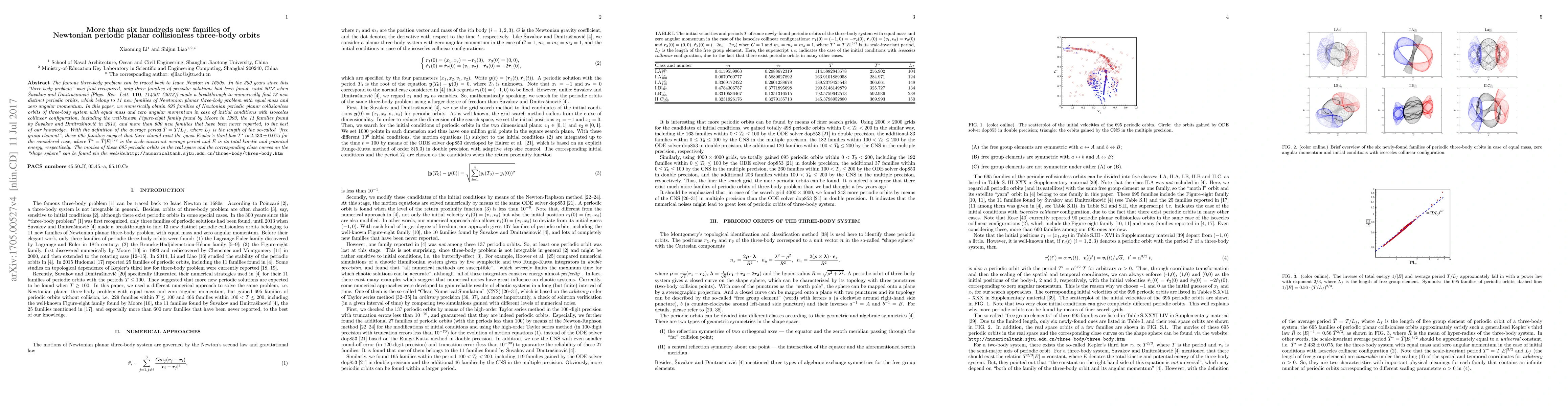 This paper reports the discovery of 695 new families of Newtonian periodic planar collisionless three-body orbits, significantly expanding the known number of such orbits. The findings include over 600 previously unreported families, suggesting a quasi Kepler's third law for these orbits.