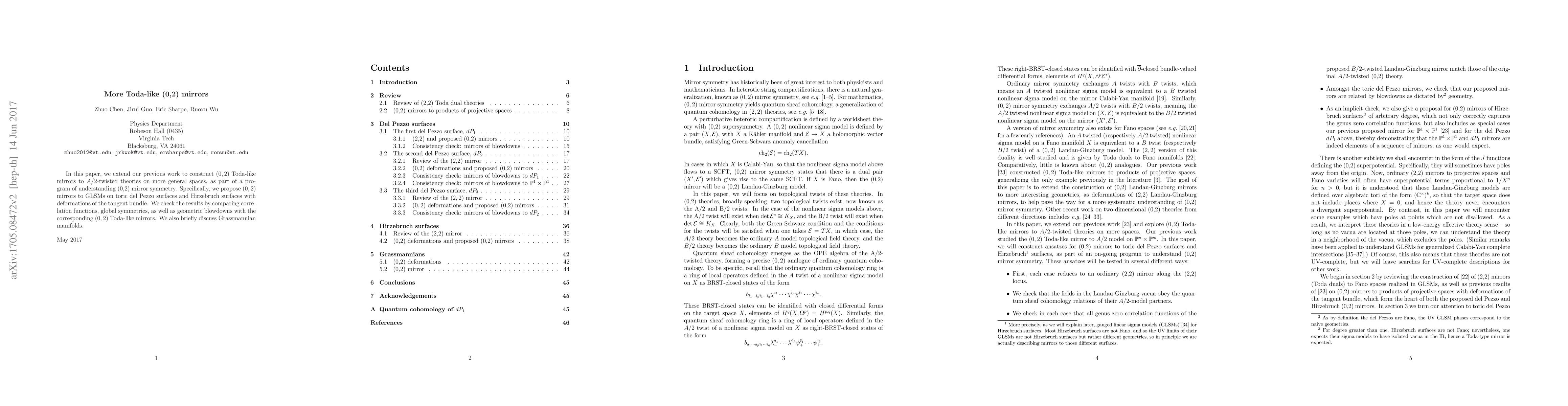 The paper extends previous work to construct (0,2) Toda-like mirrors for A/2-twisted theories on toric del Pezzo surfaces and Hirzebruch surfaces with deformations of the tangent bundle, using correlation functions, global symmetries, and geometric blowdowns for verification.