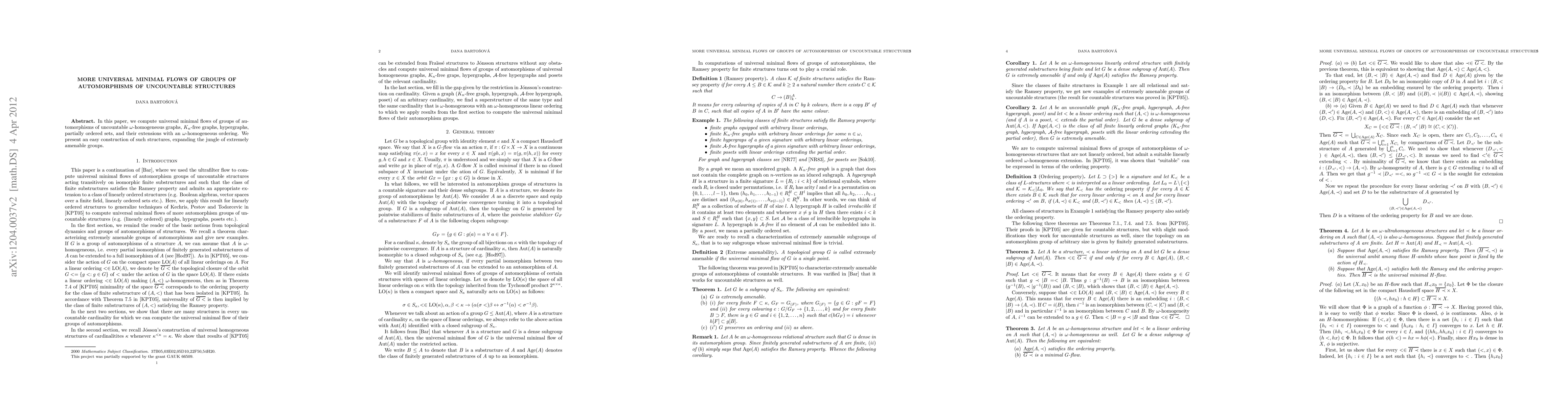 This paper computes universal minimal flows for automorphism groups of various uncountable, $\omega$-homogeneous structures, including graphs, hypergraphs, and partially ordered sets, providing a straightforward construction method and expanding the understanding of extremely amenable groups.