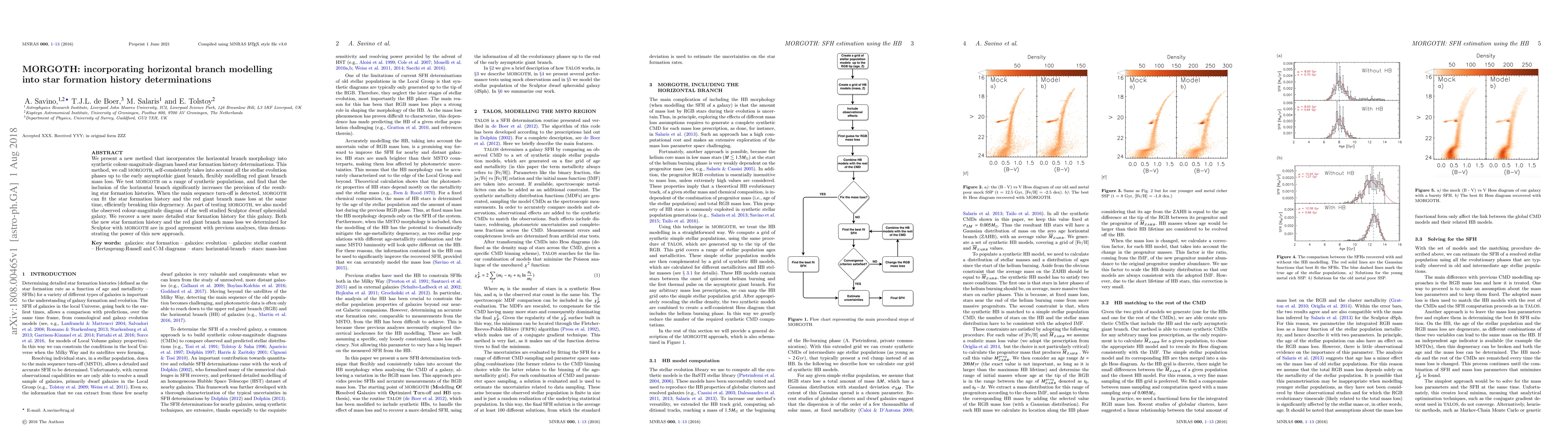 We present a new method that incorporates the horizontal branch morphology into synthetic colour-magnitude diagram based star formation history determinations. This method, we call MORGOTH, self-consistently takes into account all the stellar evolution phases up to the early asymptothic giant branch, flexibly modelling red giant branch mass loss. We test MORGOTH on a range of synthetic populations, and find that the inclusion of the horizontal branch significantly increases the precision of the resulting star formation histories. When the main sequence turn-off is detected, MORGOTH can fit the star formation history and the red giant branch mass loss at the same time, efficiently breaking this degeneracy. As part of testing MORGOTH, we also model the observed colour-magnitude diagram of the well studied Sculptor dwarf spheroidal galaxy. We recover a new more detailed star formation history for this galaxy. Both the new star formation history and the red giant branch mass loss we determined for Sculptor with MORGOTH are in good agreement with previous analyses, thus demonstrating the power of this new approach.