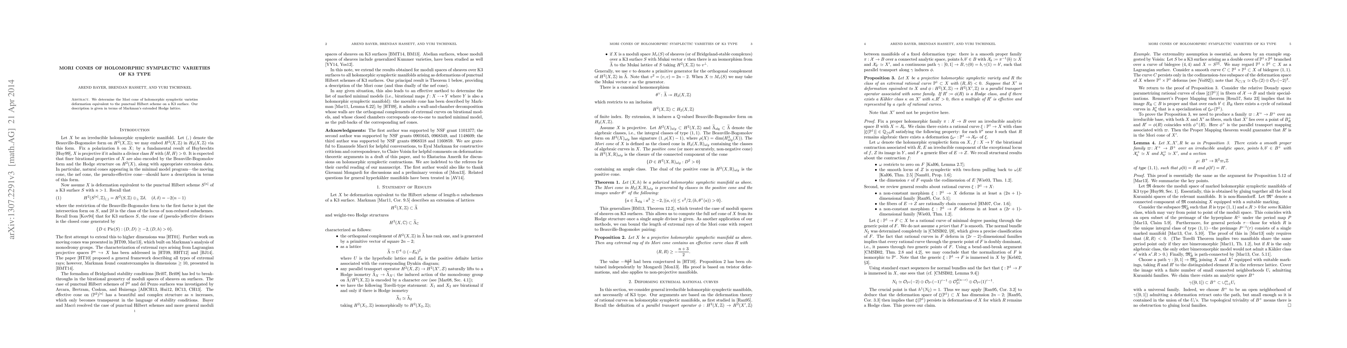 This paper determines the Mori cone for holomorphic symplectic varieties deformation equivalent to the punctual Hilbert scheme on a K3 surface, describing it in terms of Markman's extended Hodge lattice. The findings provide insight into the birational geometry of these complex algebraic varieties.