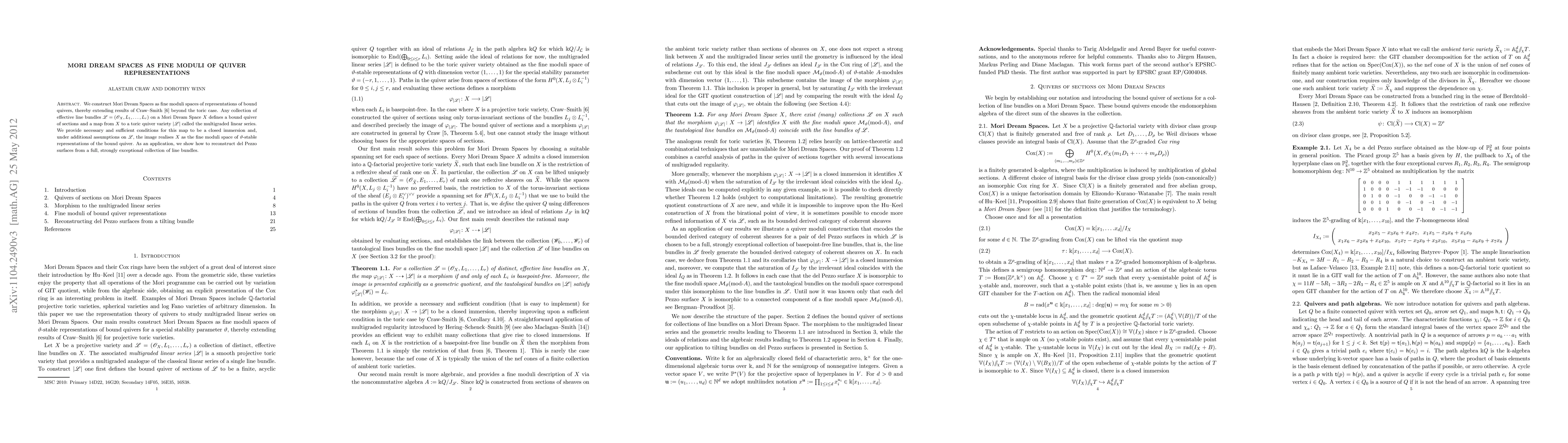 We construct Mori Dream Spaces as fine moduli spaces of representations of bound quivers, thereby extending results of Craw--Smith \cite{CrawSmith} beyond the toric case. Any collection of effective line bundles $\mathscr{L}=(\mathscr{O}_X, L_1,..., L_r)$ on a Mori Dream Space $X$ defines a bound quiver of sections and a map from $X$ to a toric quiver variety $|\mathscr{L}|$ called the multigraded linear series. We provide necessary and sufficient conditions for this map to be a closed immersion and, under additional assumptions on $\mathscr{L}$, the image realises $X$ as the fine moduli space of $\vartheta$-stable representations of the bound quiver. As an application, we show how to reconstruct del Pezzo surfaces from a full, strongly exceptional collection of line bundles.