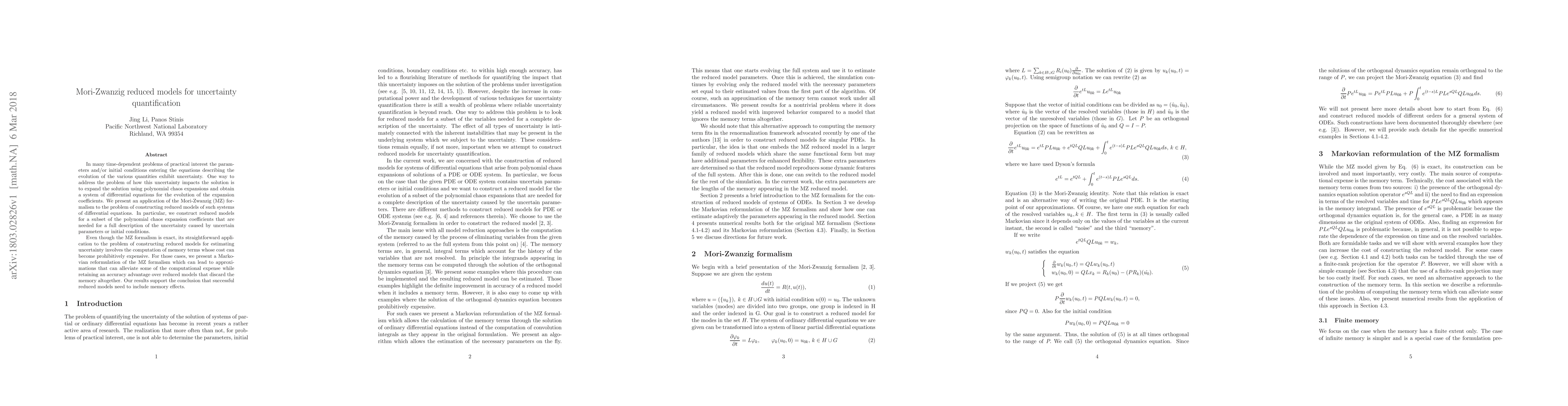 This paper applies the Mori-Zwanzig formalism to construct reduced models for systems with uncertain parameters, using polynomial chaos expansions. It introduces a Markovian reformulation to manage computational costs while maintaining accuracy, demonstrating the importance of memory effects in effective uncertainty quantification.