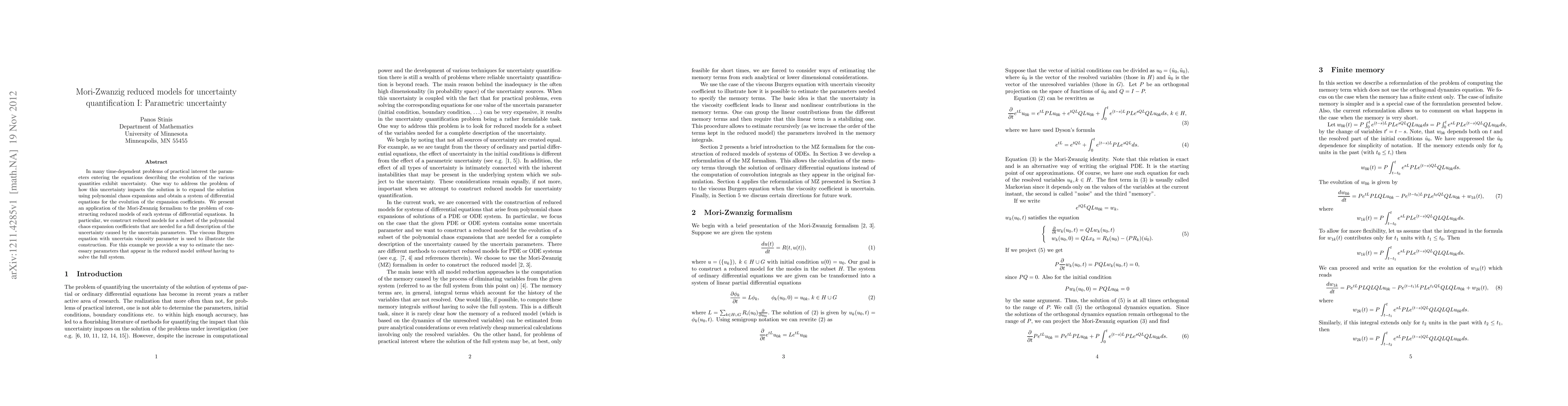Researchers develop a method to construct reduced models for complex systems with uncertain parameters, using polynomial chaos expansions and the Mori-Zwanzig formalism, to estimate uncertainty in solutions.
