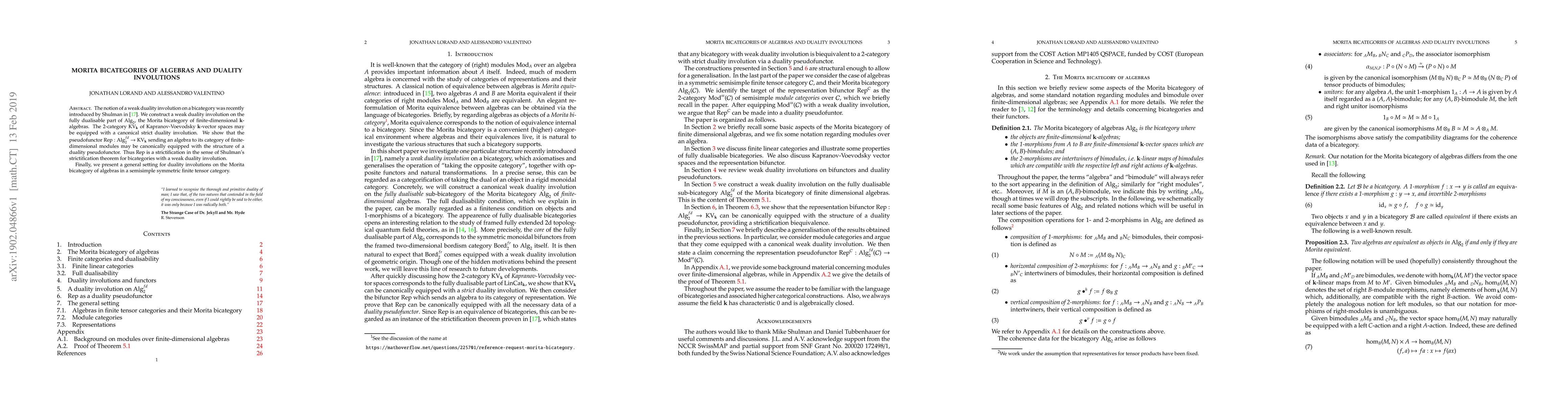 This paper constructs a weak duality involution on the Morita bicategory of finite-dimensional algebras and demonstrates its strictification through the Kapranov-Voevodsky k-vector spaces. It also presents a general framework for duality involutions in semisimple symmetric finite tensor categories.