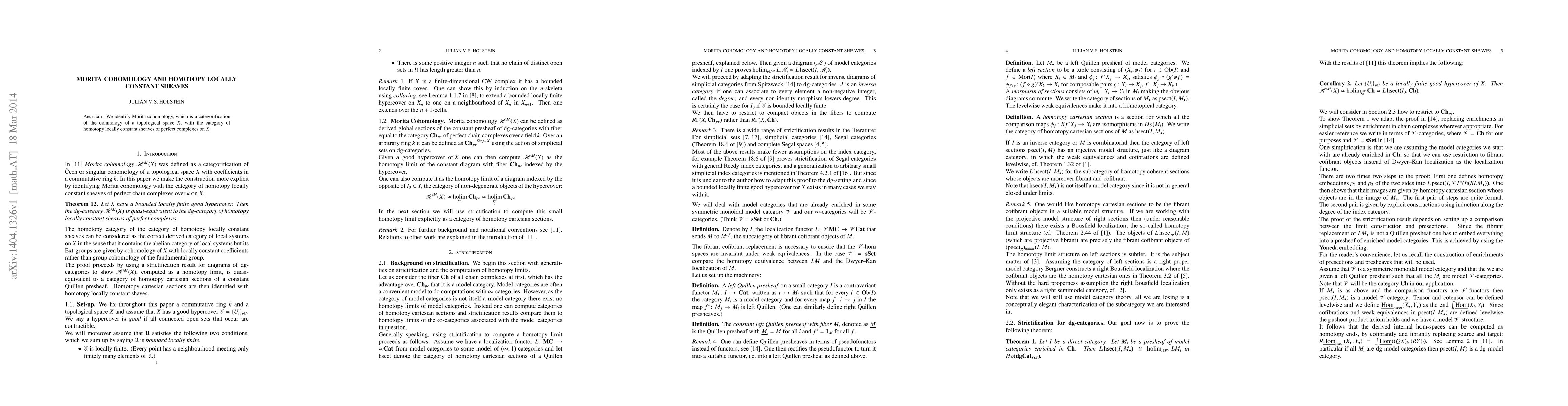 The paper introduces a new perspective on Morita cohomology by connecting it to homotopy locally constant sheaves of perfect complexes, using advanced model category theory techniques.