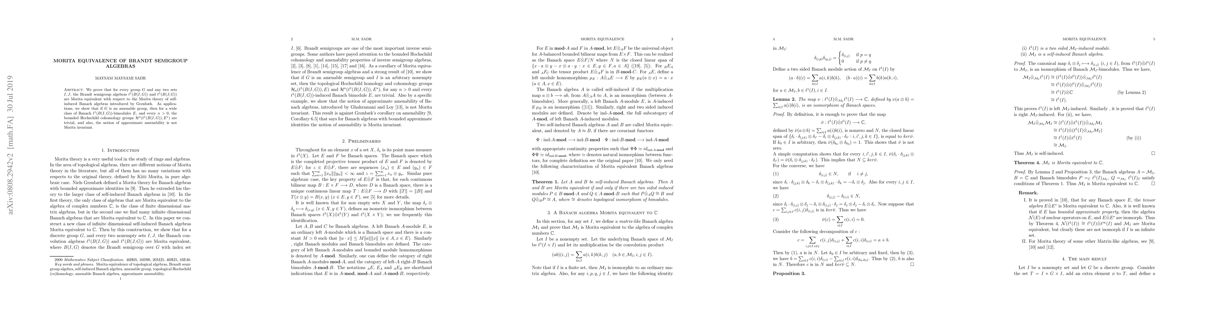 This paper proves Morita equivalence of Brandt semigroup algebras $\ell(B(I,G))$ and $\ell(B(J,G))$ for any group $G$ and sets $I,J$. It also demonstrates that for amenable groups $G$, certain Banach $\ell(B(I,G))$-bimodules have trivial bounded Hochschild cohomology groups, and approximate amenability is not Morita invariant.