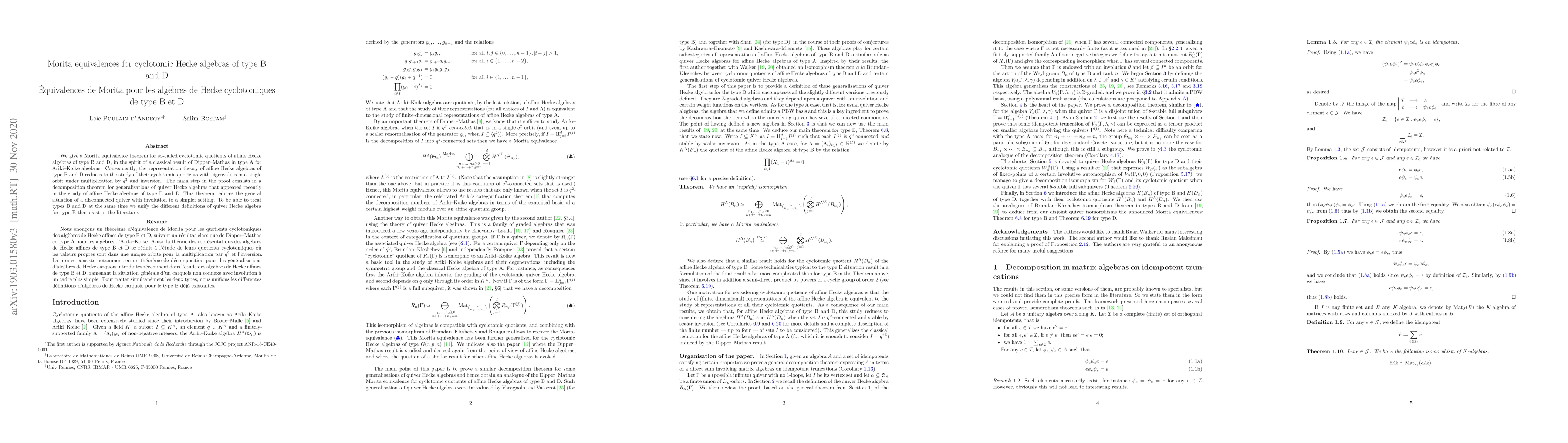 This paper establishes Morita equivalences for cyclotomic quotients of affine Hecke algebras of type B and D, simplifying their representation theory. The proof leverages a decomposition theorem for generalized quiver Hecke algebras to unify different type B definitions and handle types B and D together.