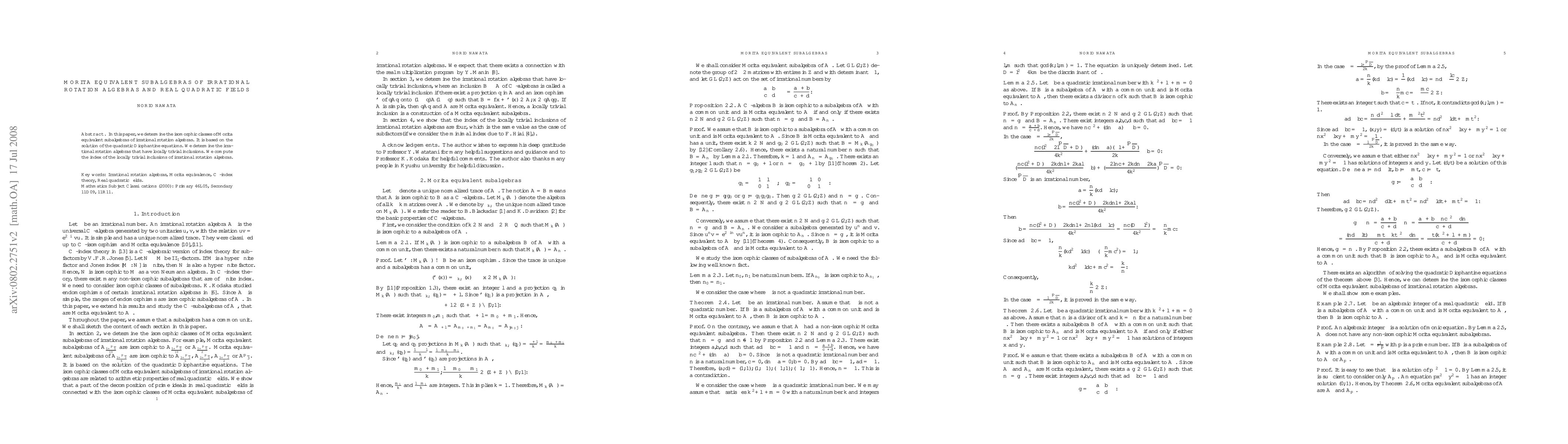 This paper classifies Morita equivalent subalgebras of irrational rotation algebras, utilizing the solution of quadratic Diophantine equations. It identifies irrational rotation algebras with locally trivial inclusions and computes the index of these inclusions.