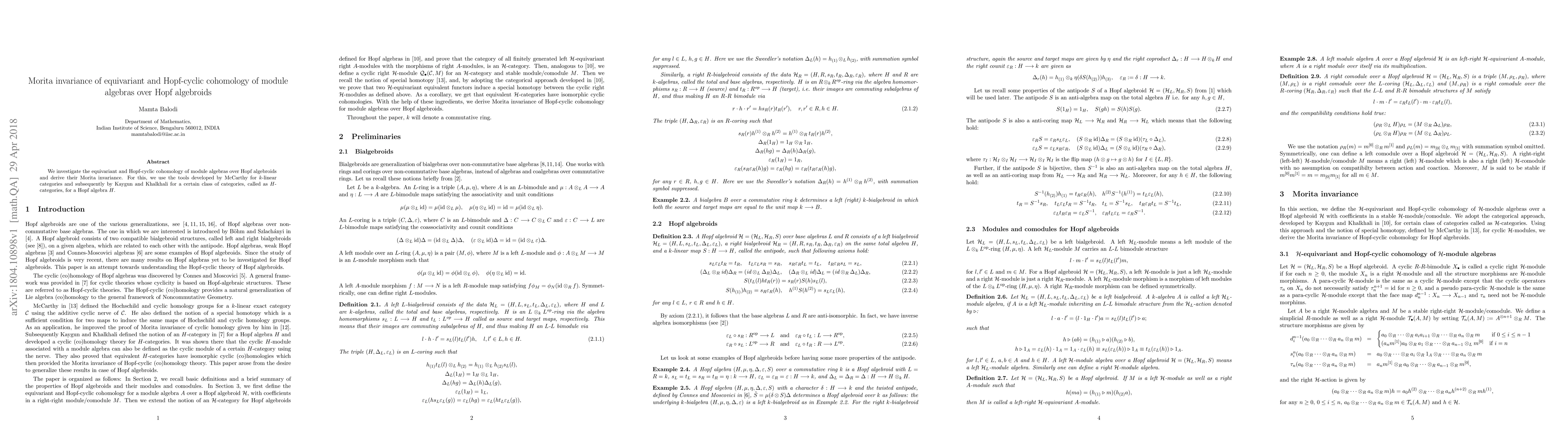 Summary: This paper explores the equivariant and Hopf-cyclic cohomology of module algebras over Hopf algebroids, establishing their Morita invariance using methods developed for $k$-linear categories and $H$-categories by McCarthy, Kaygun, and Khalkhali. The results highlight the structural stability of these cohomologies under Morita equivalence.