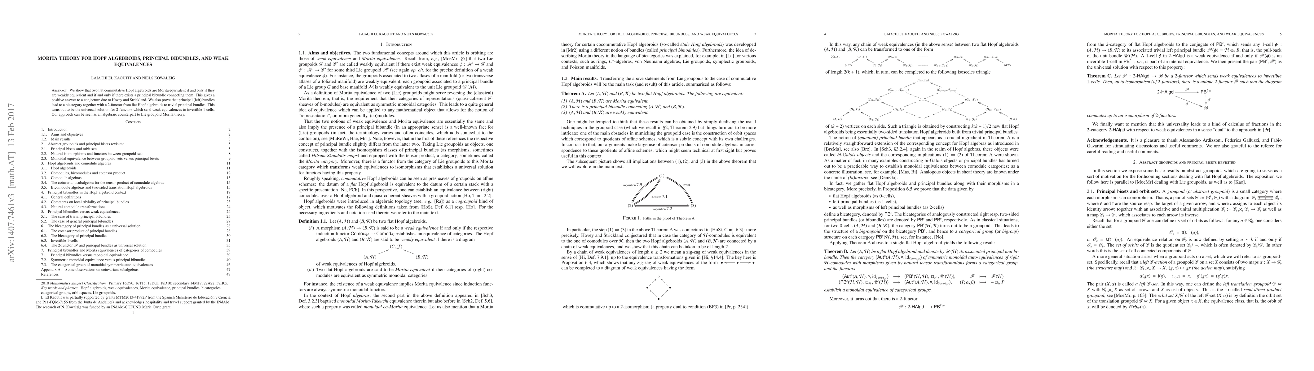 This paper establishes a connection between Morita equivalence of flat commutative Hopf algebroids and weak equivalences, showing they are equivalent if there exists a principal bibundle linking them. It also constructs a bicategory from principal bundles and proves it is the universal solution for 2-functors mapping weak equivalences to invertible 1-cells.
