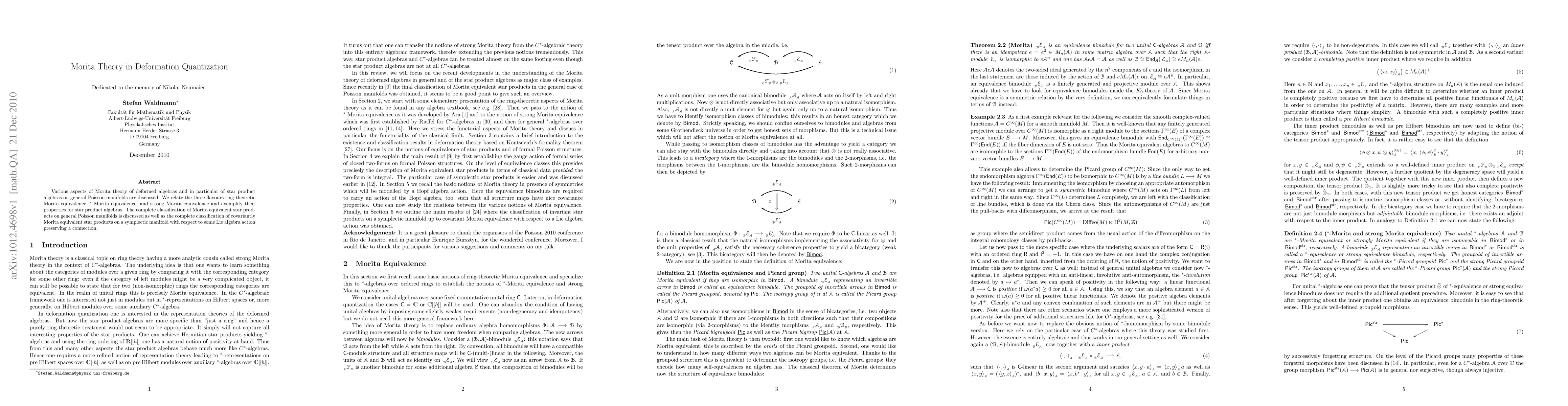 Various aspects of Morita theory of deformed algebras and in particular of star product algebras on general Poisson manifolds are discussed. We relate the three flavours ring-theoretic Morita equivalence, $^*$-Morita equivalence, and strong Morita equivalence and exemplify their properties for star product algebras. The complete classification of Morita equivalent star products on general Poisson manifolds is discussed as well as the complete classification of covariantly Morita equivalent star products on a symplectic manifold with respect to some Lie algebra action preserving a connection.