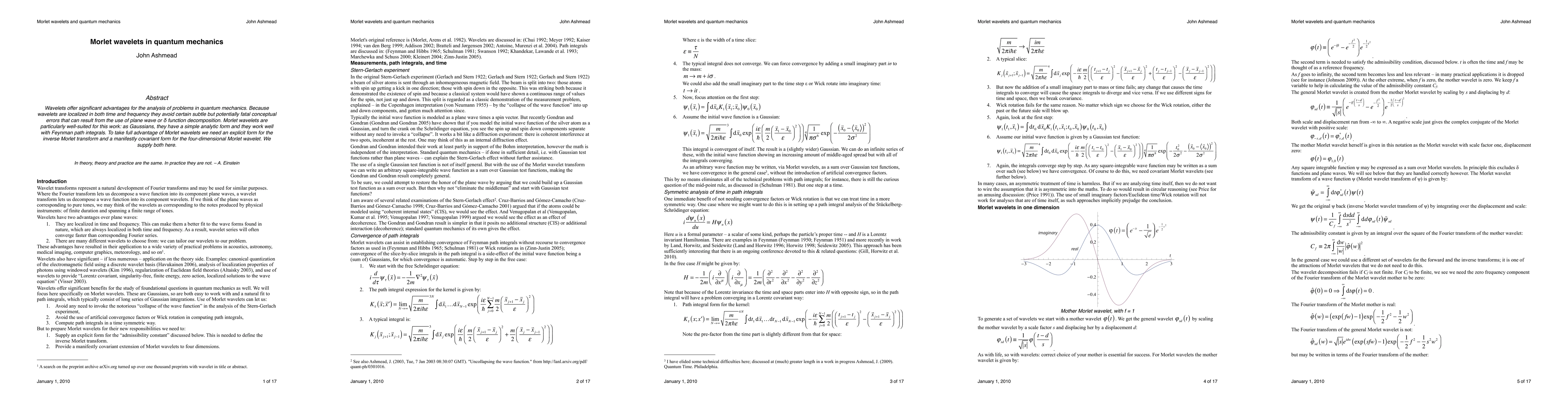 Wavelets offer significant advantages for the analysis of problems in quantum mechanics. Because wavelets are localized in both time and frequency they avoid certain subtle but potentially fatal conceptual errors that can result from the use of plane wave or delta function decomposition. Morlet wavelets are particularly well-suited for this work: as Gaussians, they have a simple analytic form and they work well with Feynman path integrals. To take full advantage of Morlet wavelets we need an explicit form for the inverse Morlet transform and a manifestly covariant form for the four-dimensional Morlet wavelet. We supply both here.