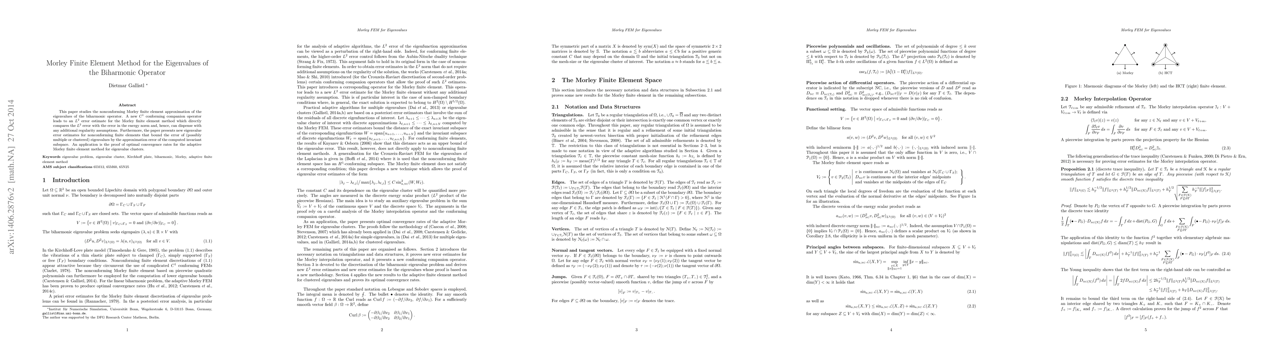 This paper studies the nonconforming Morley finite element approximation of the eigenvalues of the biharmonic operator. A new $C^1$ conforming companion operator leads to an $L^2$ error estimate for the Morley finite element method which directly compares the $L^2$ error with the error in the energy norm and, hence, can dispense with any additional regularity assumptions. Furthermore, the paper presents new eigenvalue error estimates for nonconforming finite elements that bound the error of (possibly multiple or clustered) eigenvalues by the approximation error of the computed invariant subspace. An application is the proof of optimal convergence rates for the adaptive Morley finite element method for eigenvalue clusters.