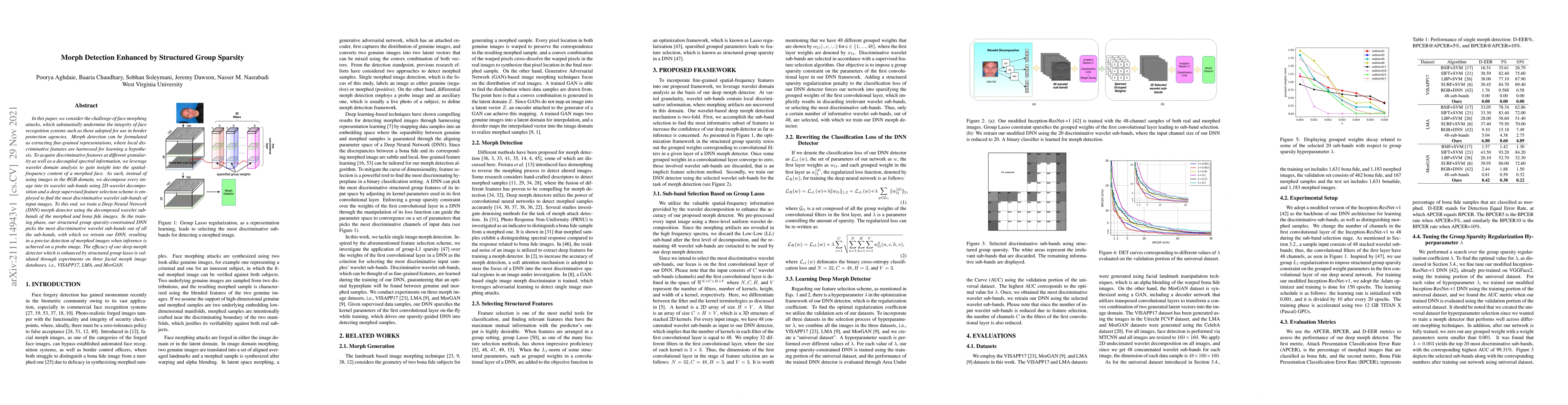 This paper proposes a method to detect face morphing attacks using a Deep Neural Network (DNN) enhanced by structured group sparsity. It leverages wavelet domain analysis to identify discriminative features from wavelet sub-bands, which are then used to train a DNN morph detector, achieving precise detection of morphed images.