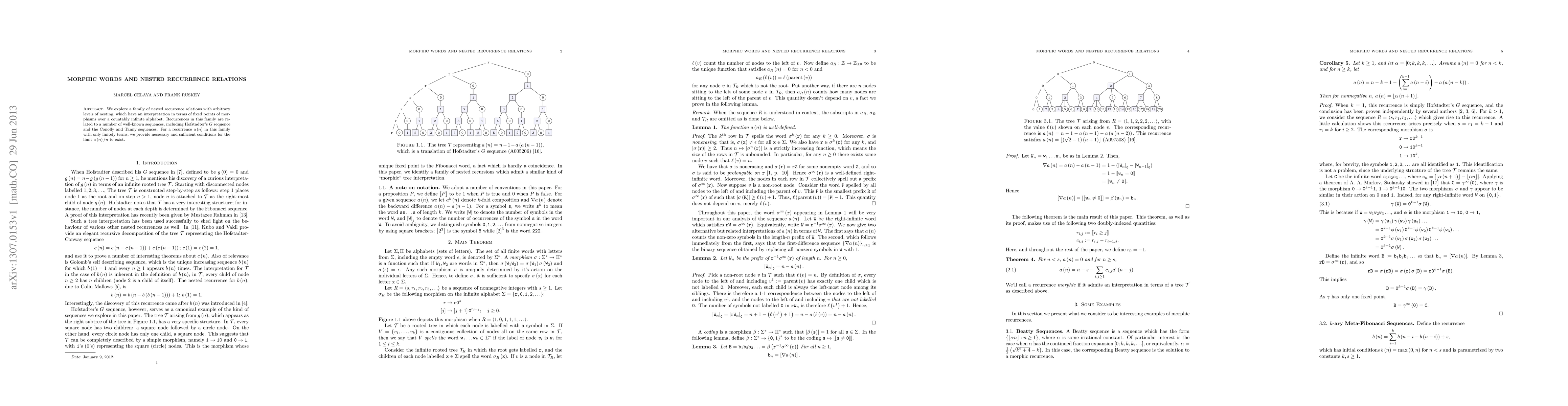 This paper investigates nested recurrence relations with varying levels of complexity, linking them to fixed points of morphisms over infinite alphabets. It establishes conditions for the existence of limits for finite recurrence sequences, including Hofstadter's G sequence and the Conolly and Tanny sequences.