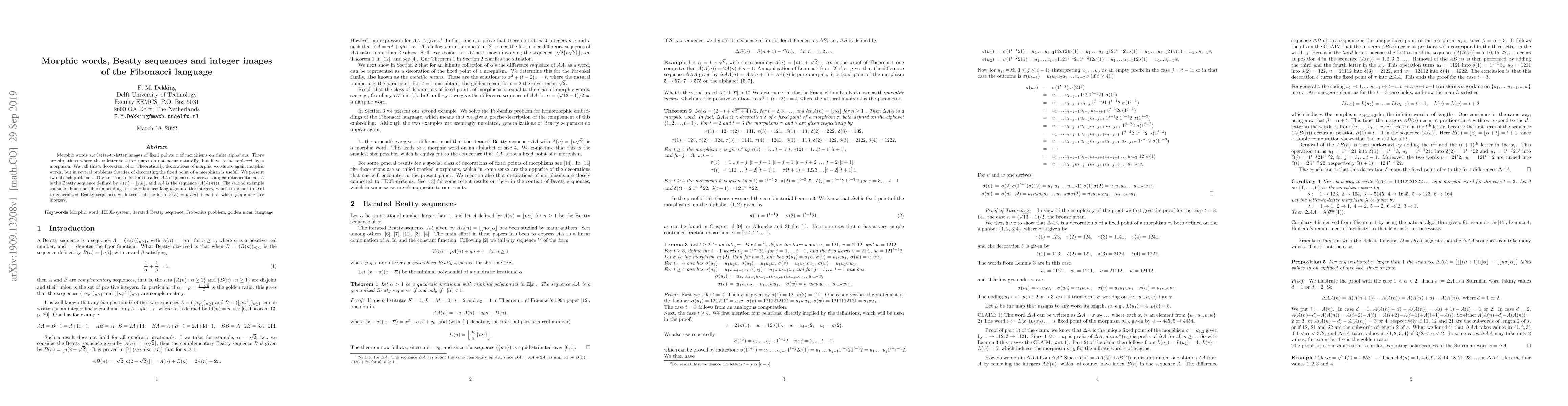 This paper explores the concept of morphic words and their decorations, applying these ideas to two problems: the $AA$ sequence generated by quadratic irrationals and Beatty sequences, and the embedding of the Fibonacci language into integers, resulting in generalized Beatty sequences with linear terms.