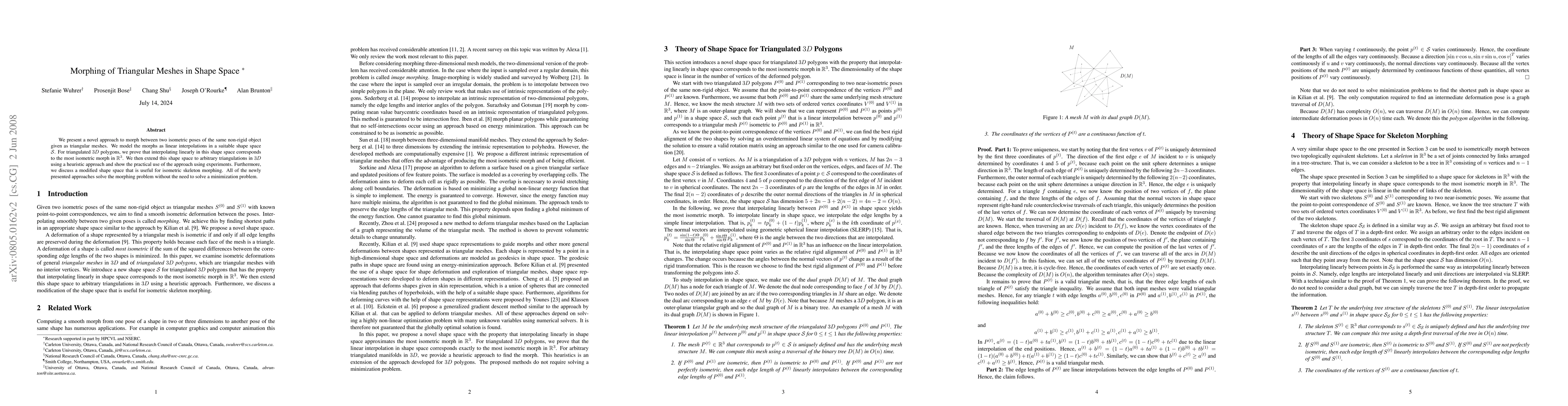We present a novel approach to morph between two isometric poses of the same non-rigid object given as triangular meshes. We model the morphs as linear interpolations in a suitable shape space $\mathcal{S}$. For triangulated 3D polygons, we prove that interpolating linearly in this shape space corresponds to the most isometric morph in $\mathbb{R}^3$. We then extend this shape space to arbitrary triangulations in 3D using a heuristic approach and show the practical use of the approach using experiments. Furthermore, we discuss a modified shape space that is useful for isometric skeleton morphing. All of the newly presented approaches solve the morphing problem without the need to solve a minimization problem.